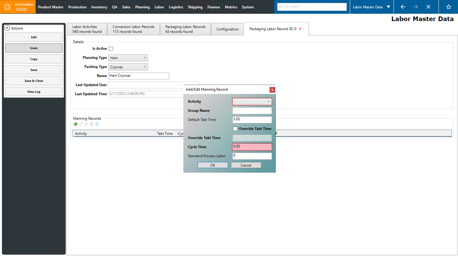Step 2: Go to the "Packaging Labor Records" tab and double-click on the packaging labor record that you want to edit.