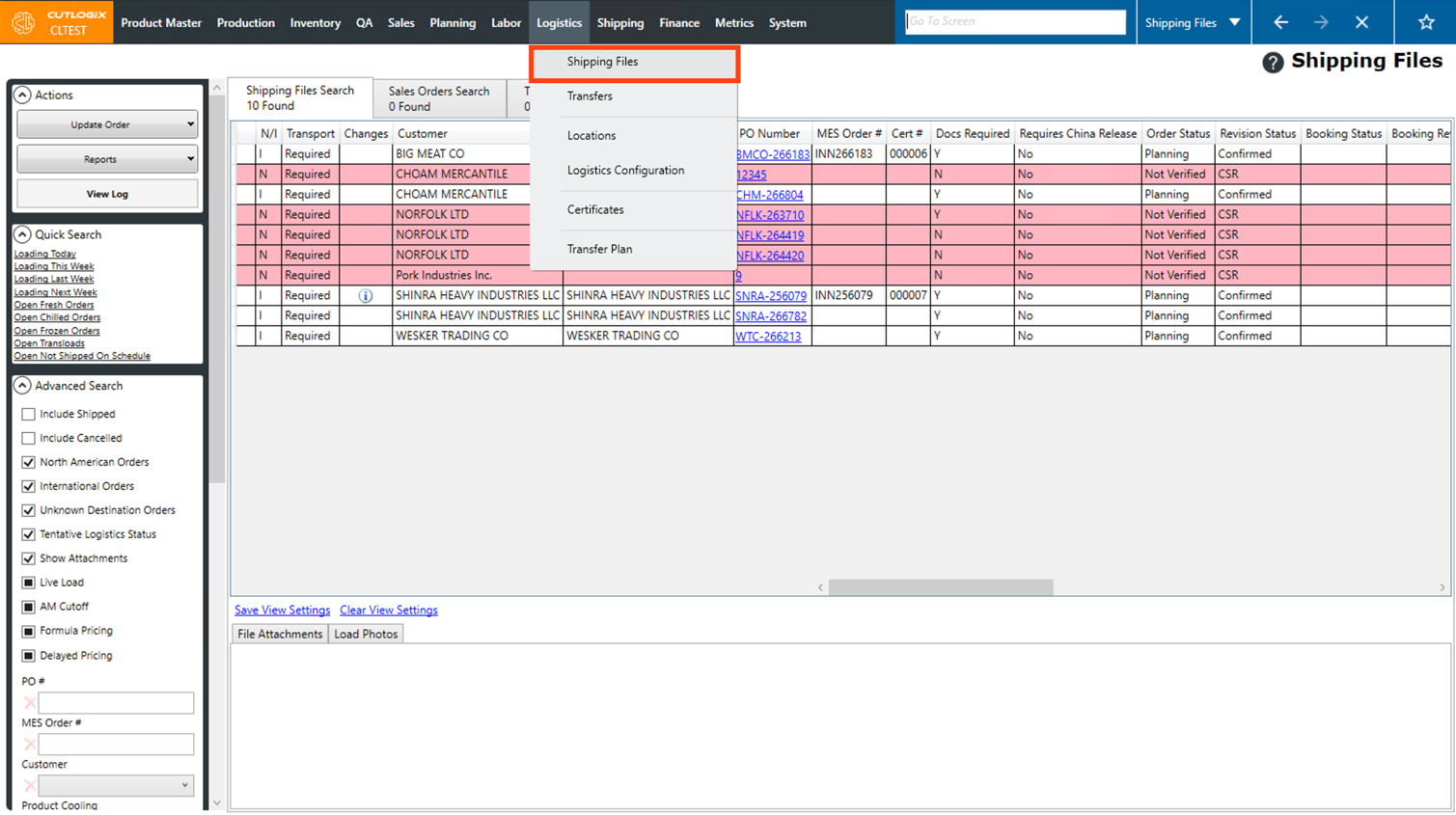 DemoStep 1: Navigate to the "Shipping Files" page (Under the Logistics menu → Shipping Files).