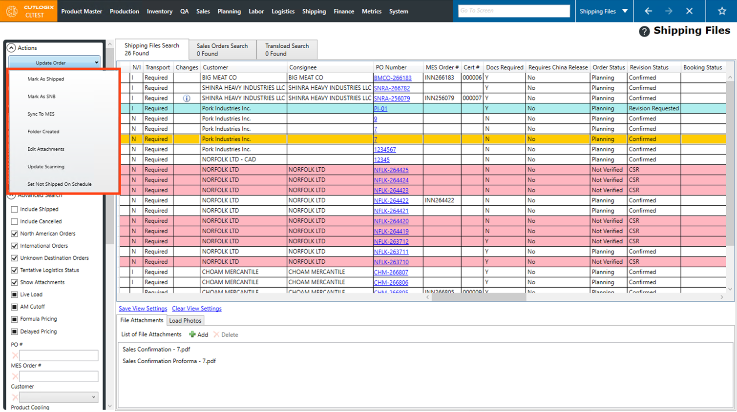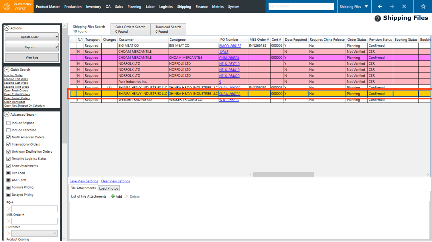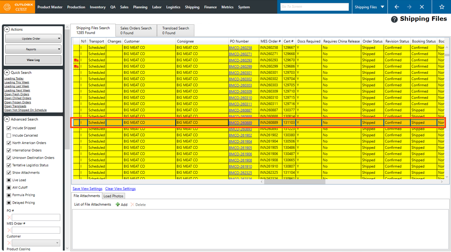 Step 2: This will bring up a list of shipping files. Shipping files are customer orders, displayed slightly differently with a focus on surfacing information important to logistics staff. Double-click on a shipping file that you want to view the final price sheet for, or click on the PO Number for the shipping file.