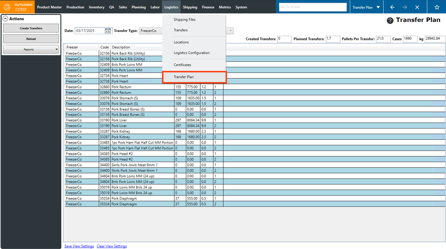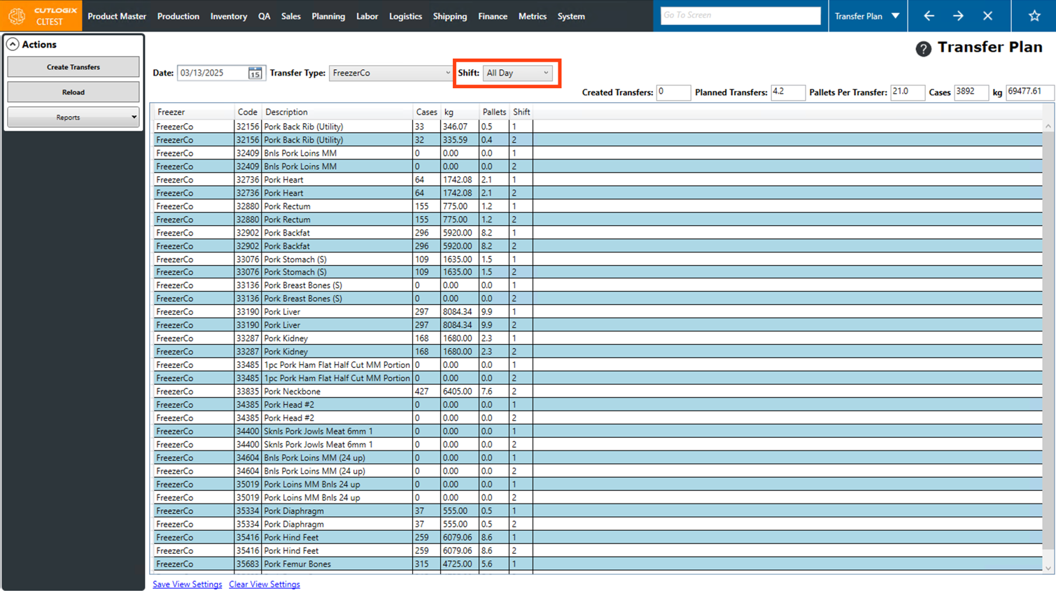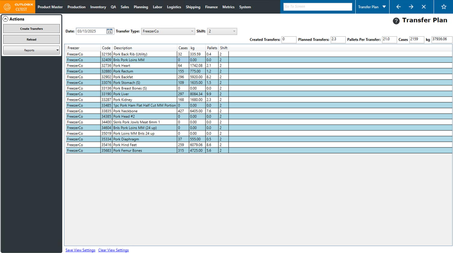 Demo Since the production plan will include producing products that need to be frozen, all of this product will need to be transferred to a freezer. This includes products that have been sold where the cooling type is frozen or production defaults that have been made that are frozen. This page enables you to create a transfer plan for all of those products to get to a freezer.