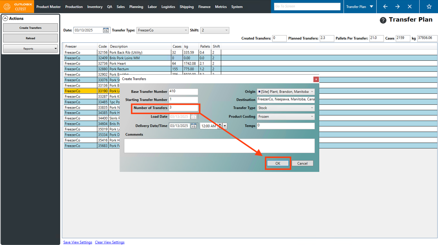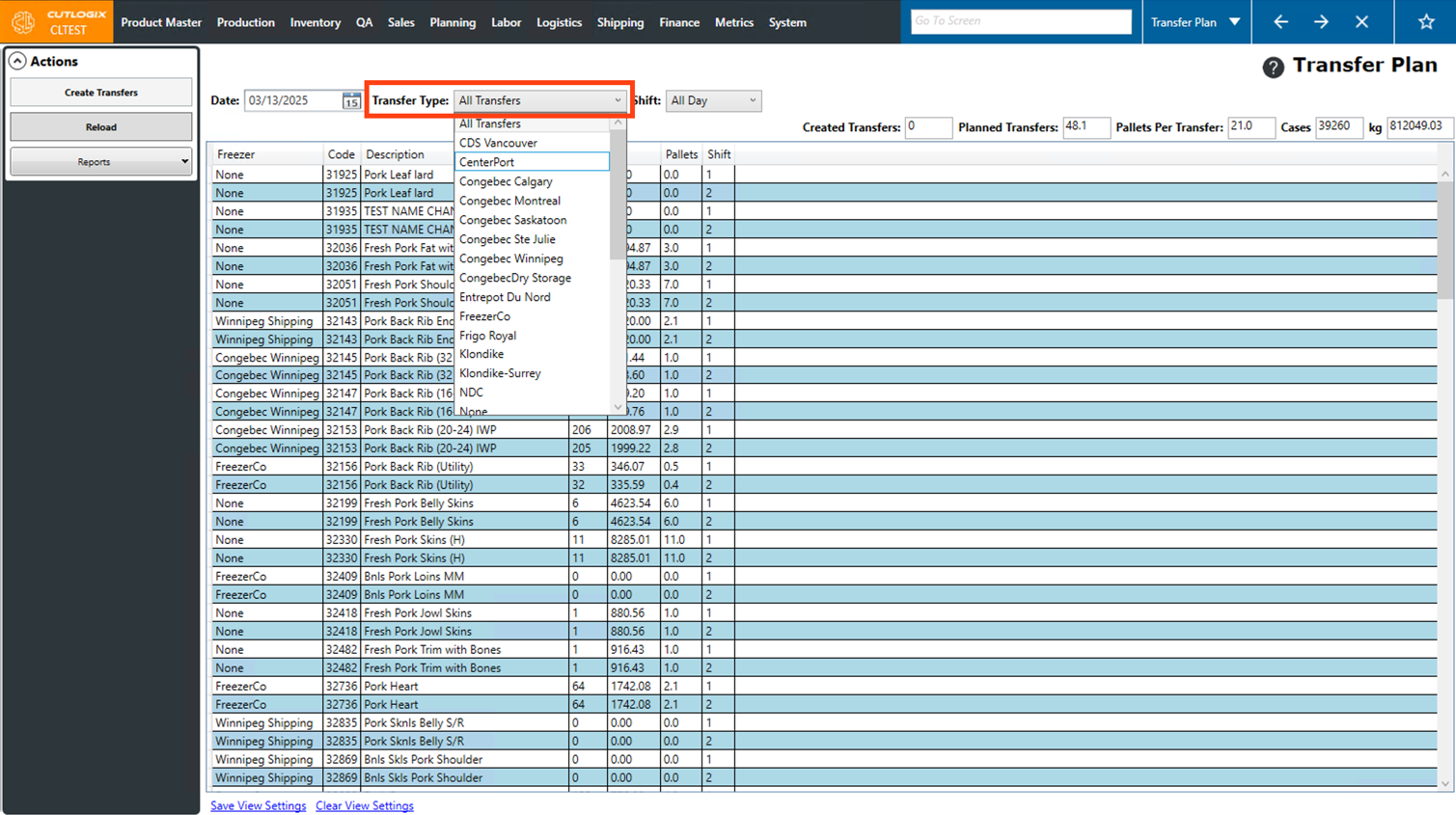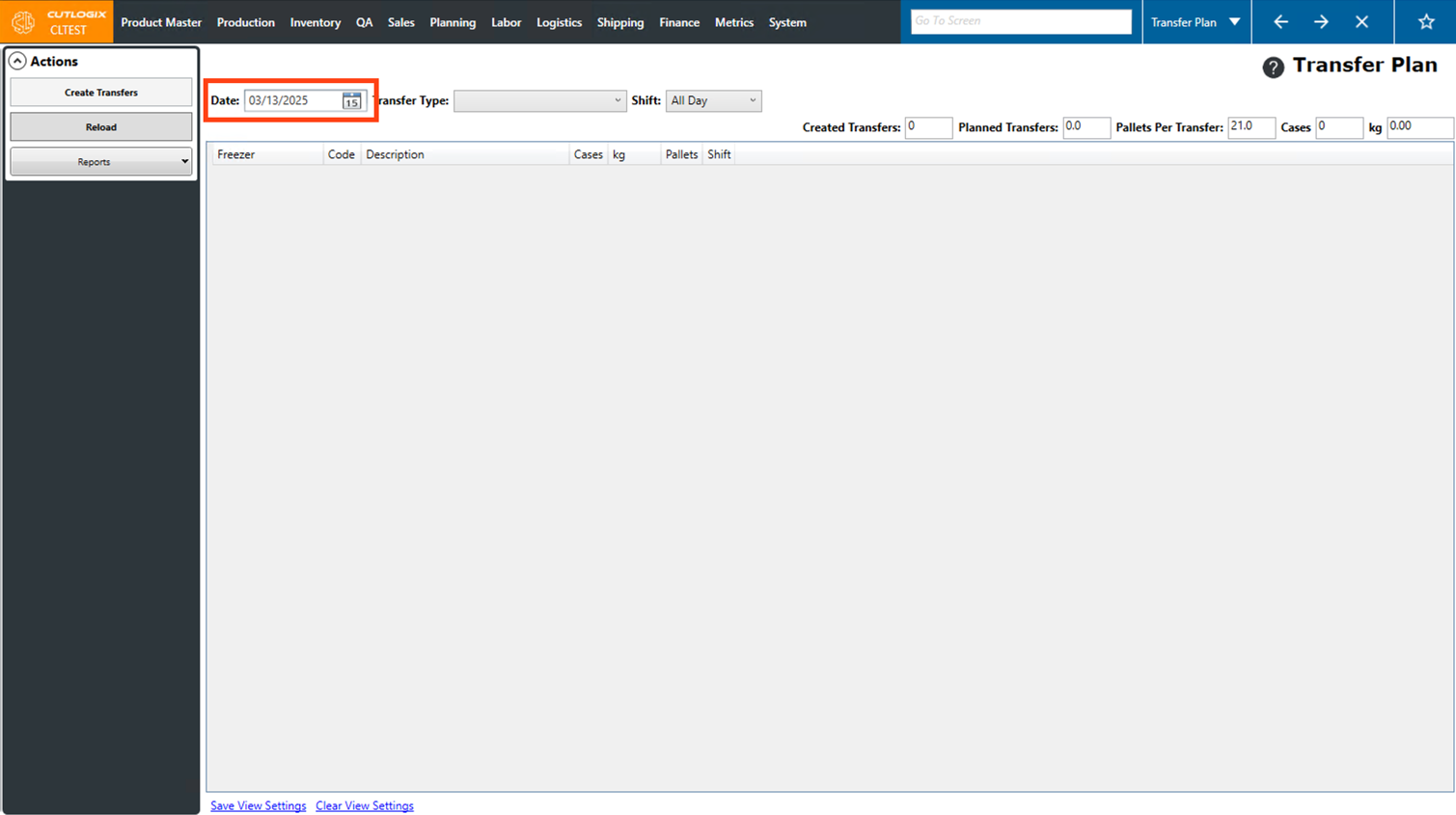 Demo Since the production plan will include producing products that need to be frozen, all of this product will need to be transferred to a freezer. This includes products that have been sold where the cooling type is frozen or production defaults that have been made that are frozen. This page enables you to create a transfer plan for all of those products to get to a freezer.