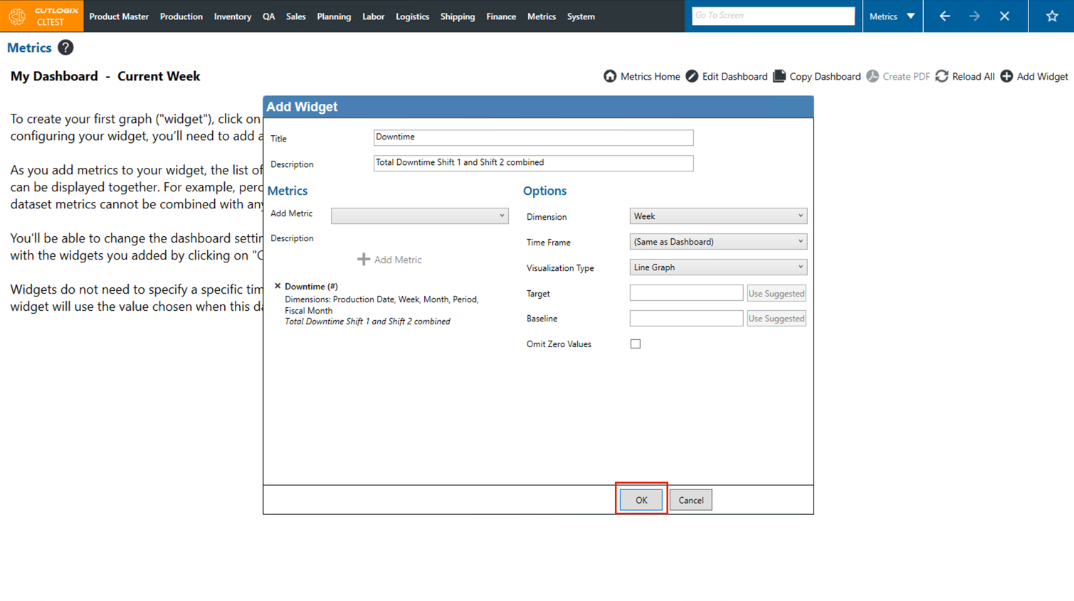 Step 4: Click "OK" to savce the new widget. If you don't want to save the new widget, clicking "Cancel" will close the dialog, and the widget will not be saved. Once saved, the widget will appear on your dashboard.