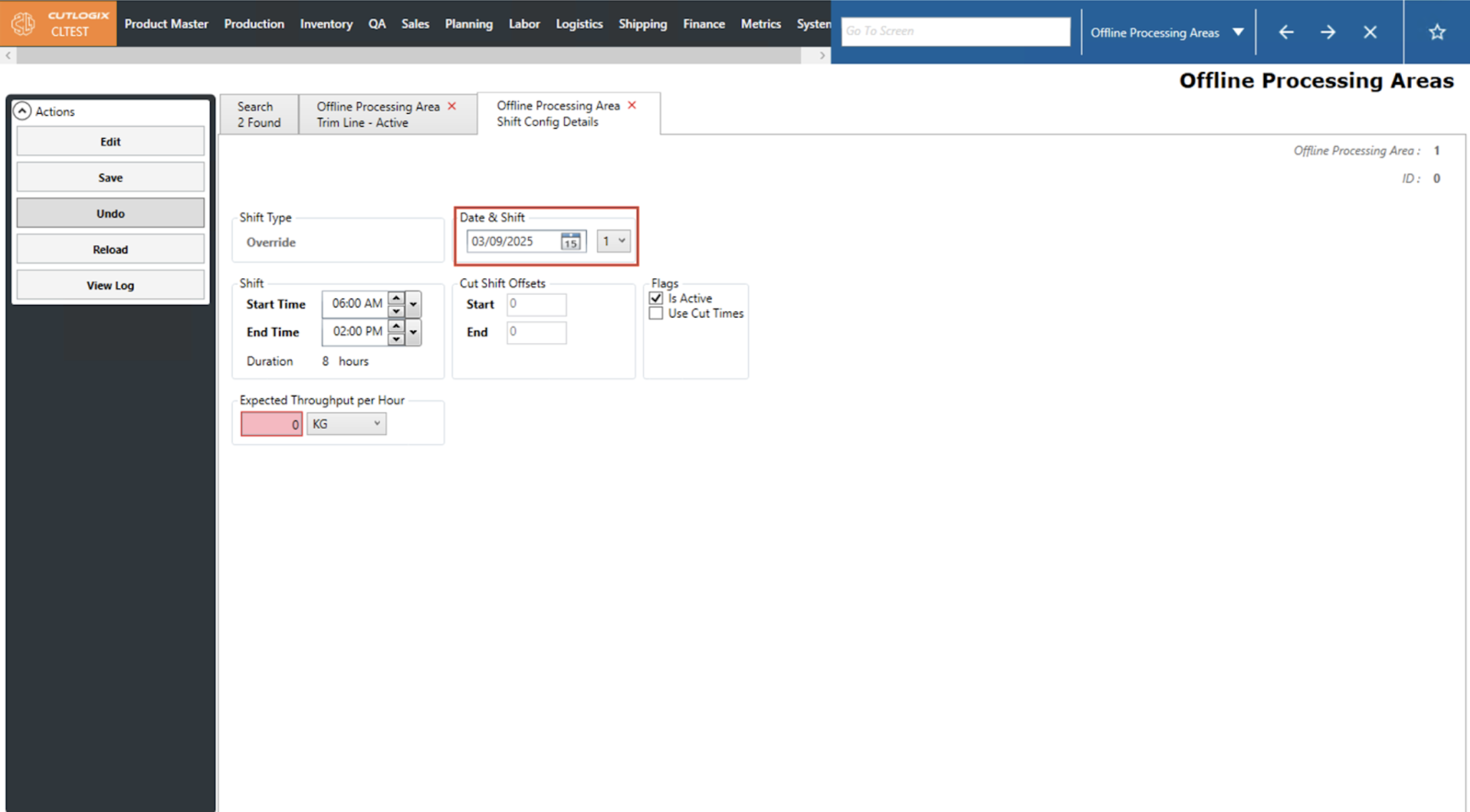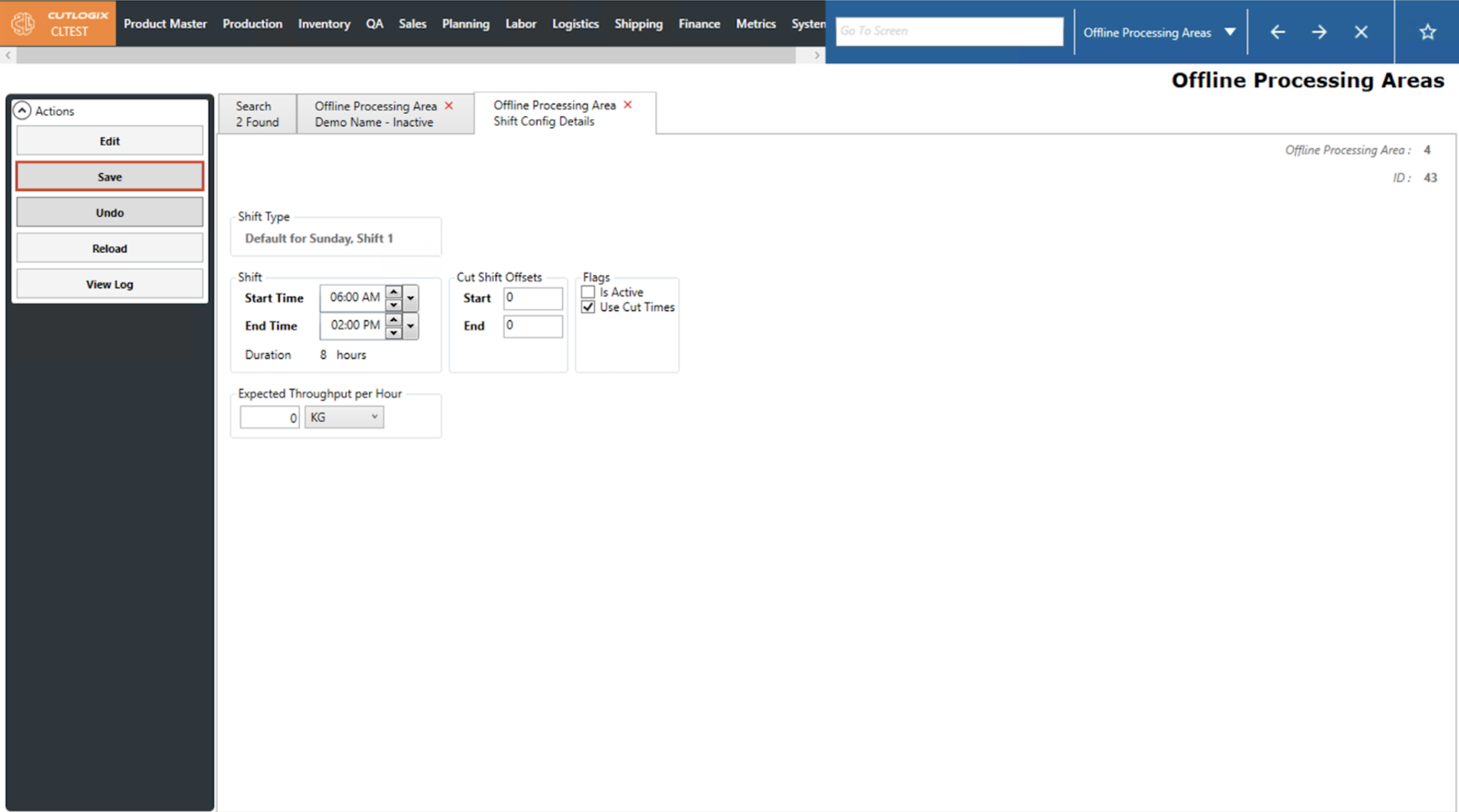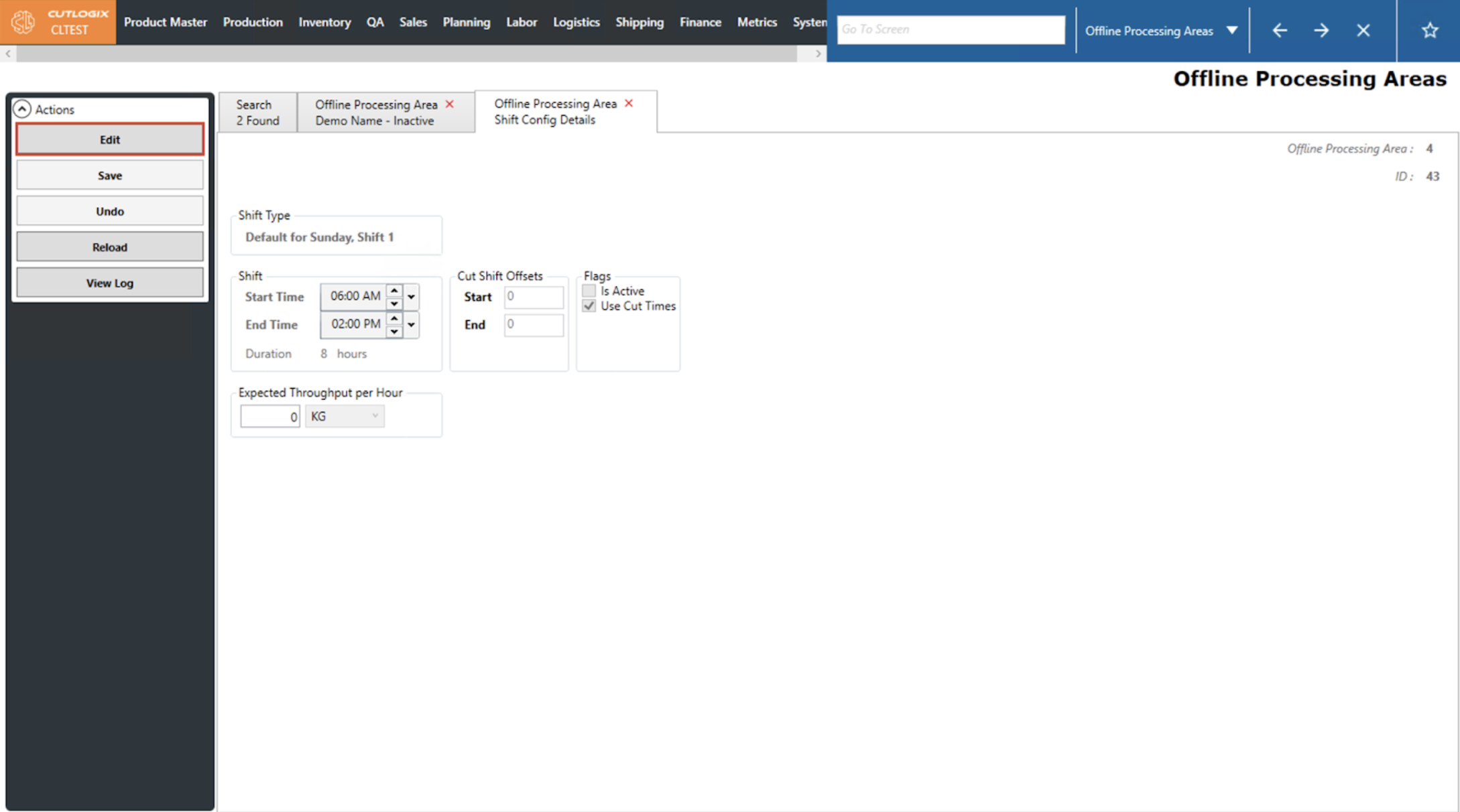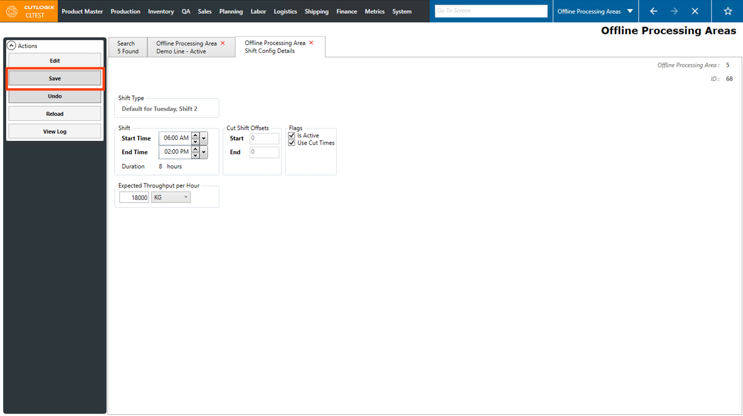 How to Edit a Shift Configuration on an Offline Processing Area