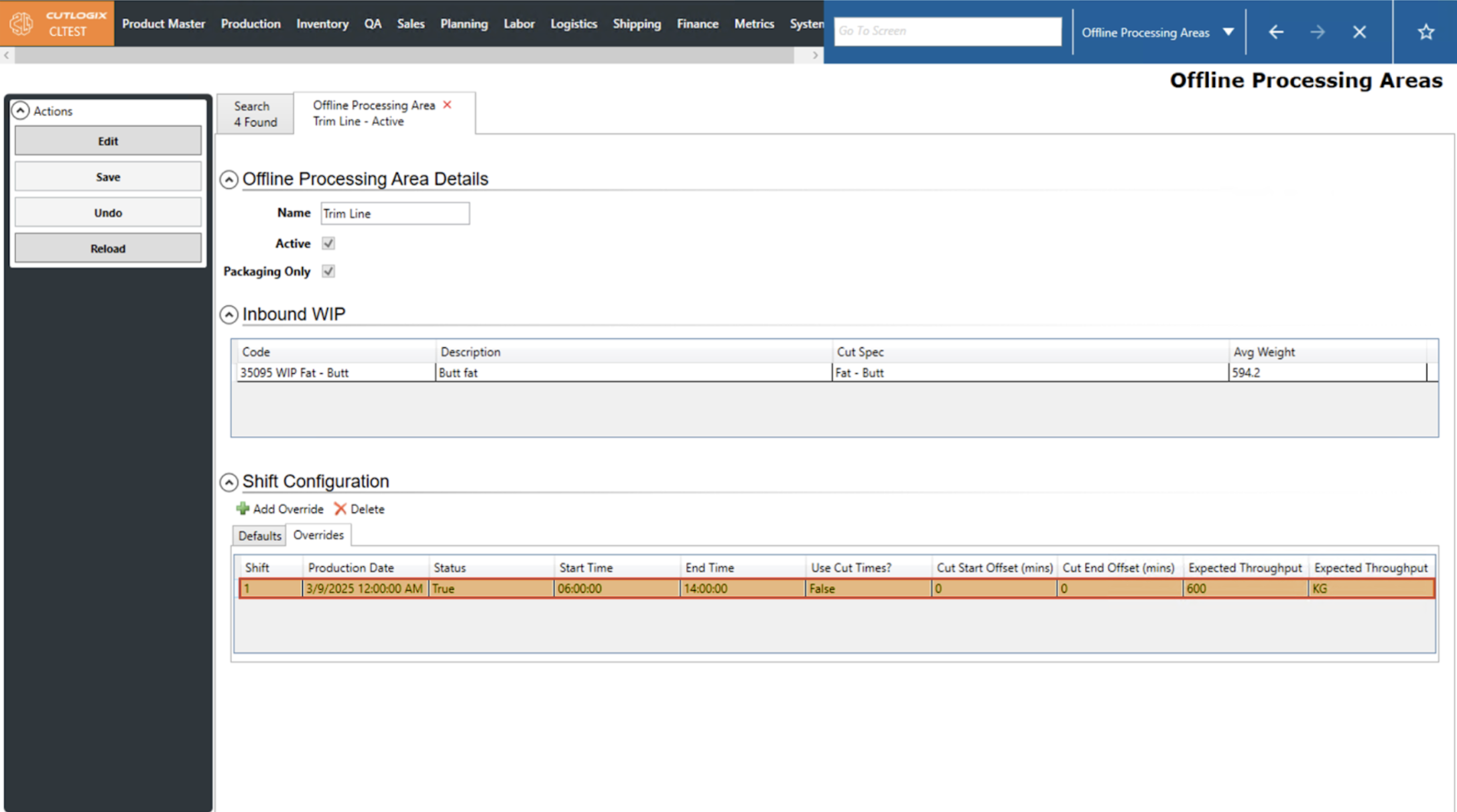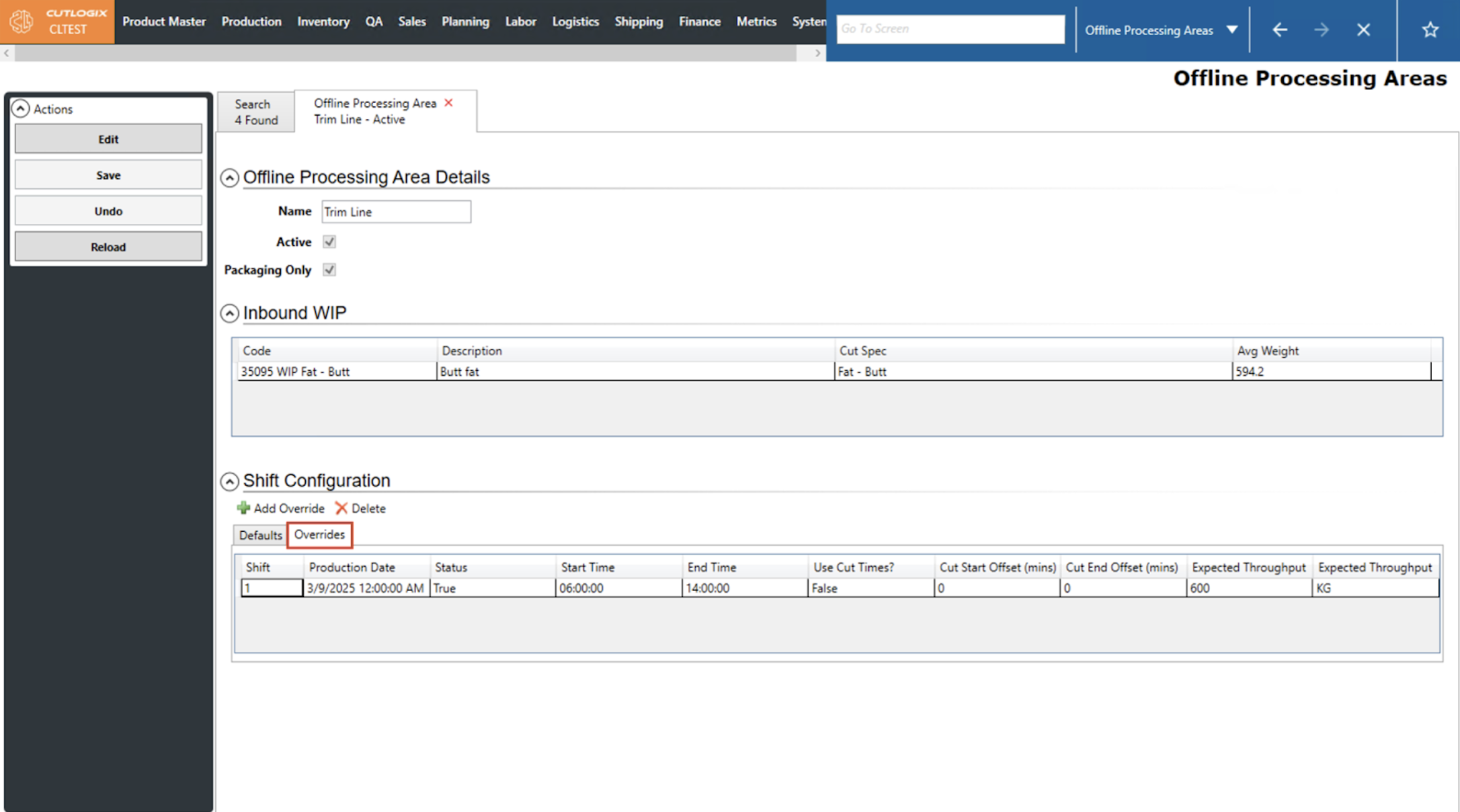 How to Edit an Override Shift Config on an Offline Processing Area
