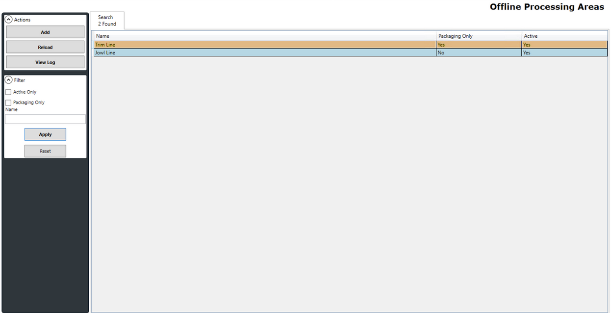 Sometimes credits require additional processing, i.e. packaging or further work. To perform this processing, labour needs to be scheduled. In CutLogix, this is accomplished on the Offline Processing Areas screen. Users can define processing areas that are in the plant but off of the main production line.