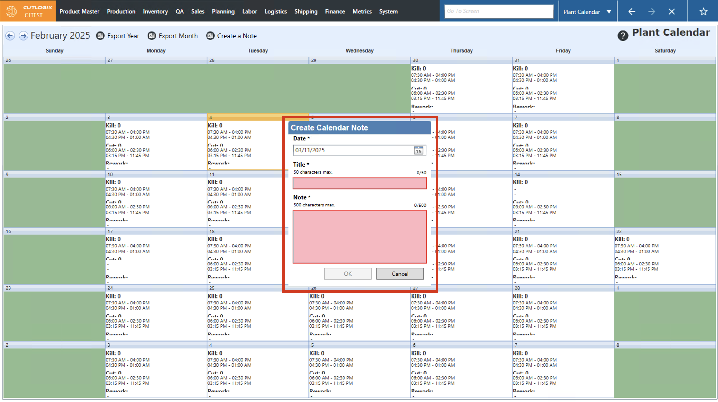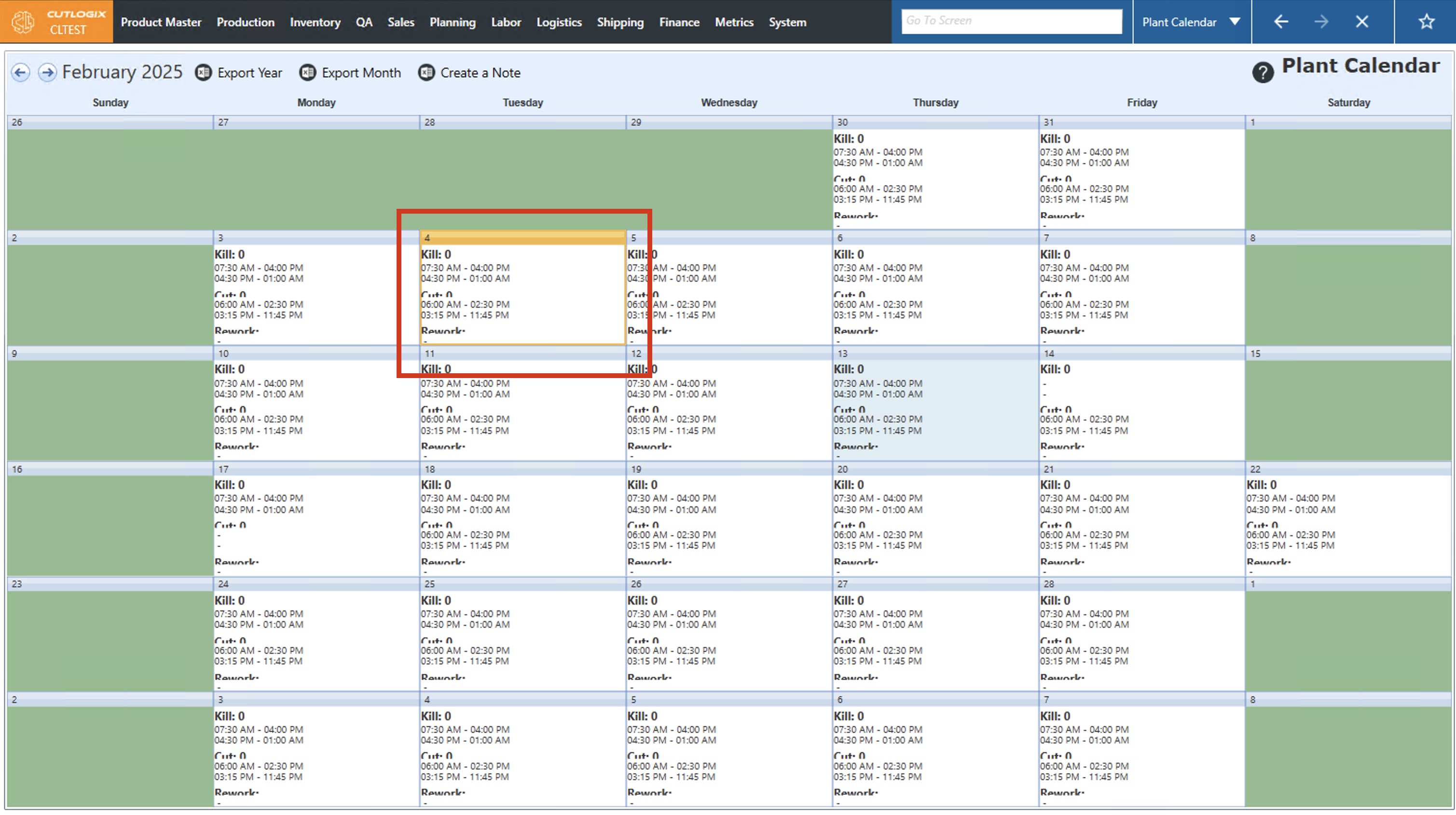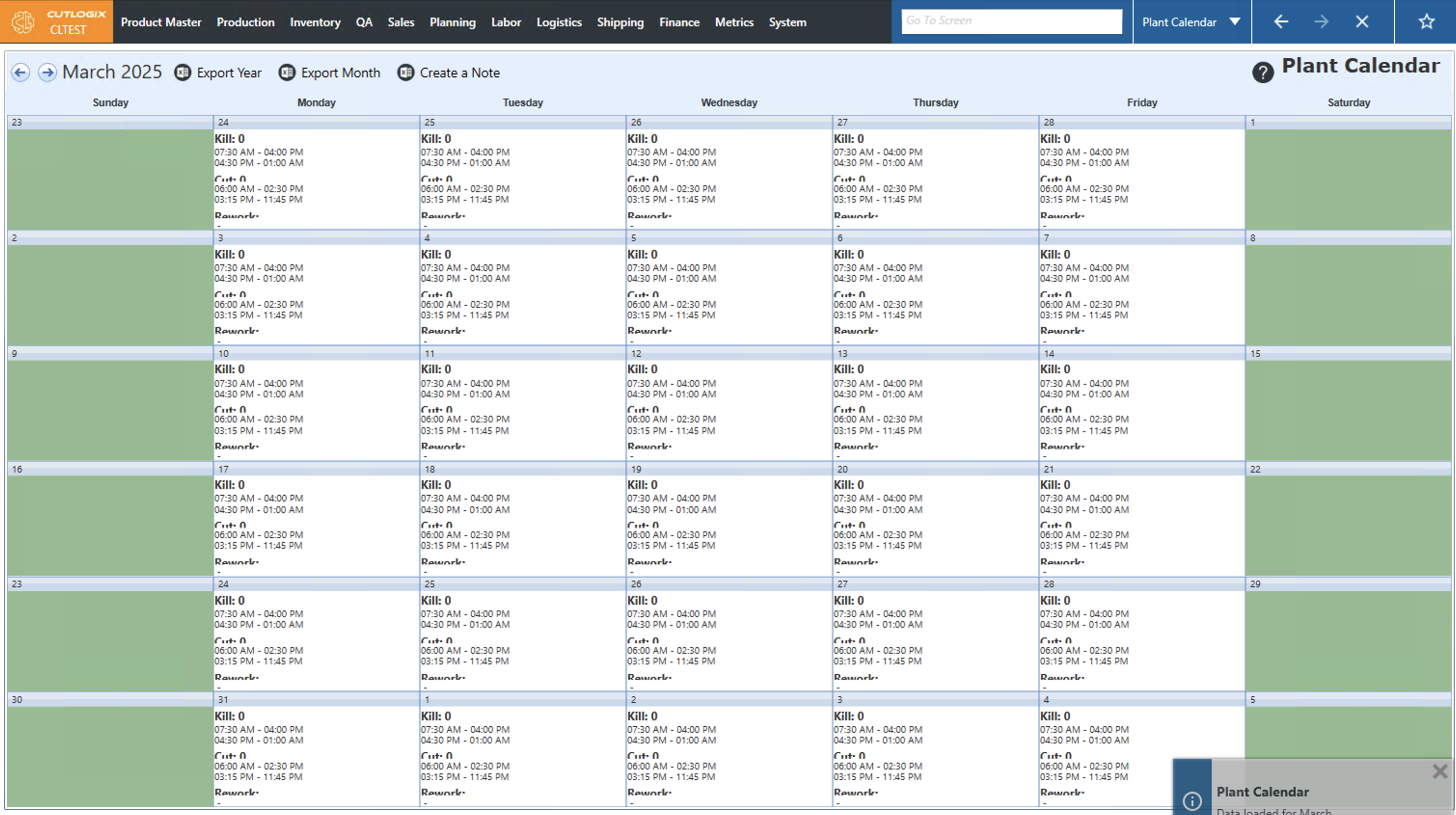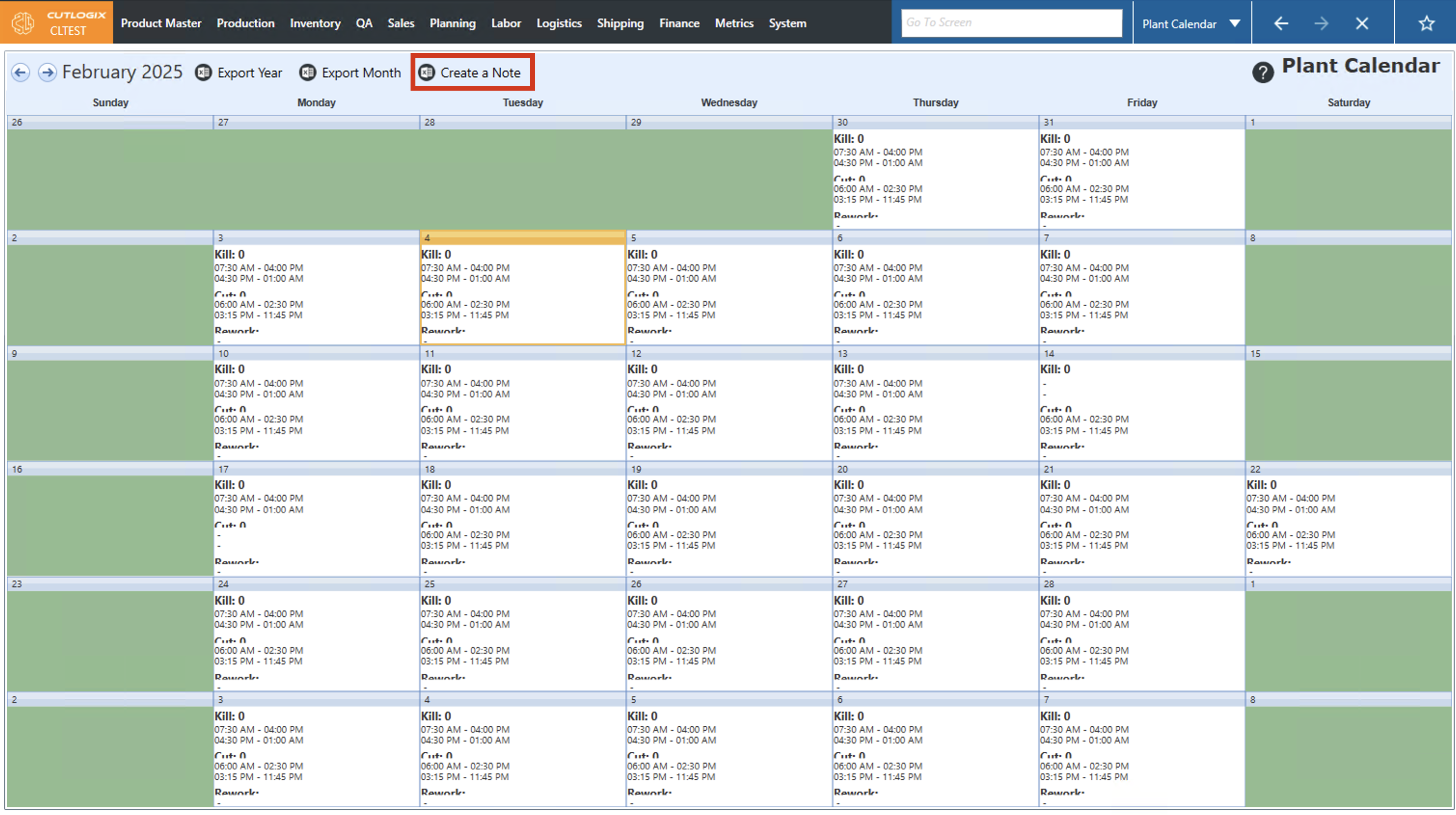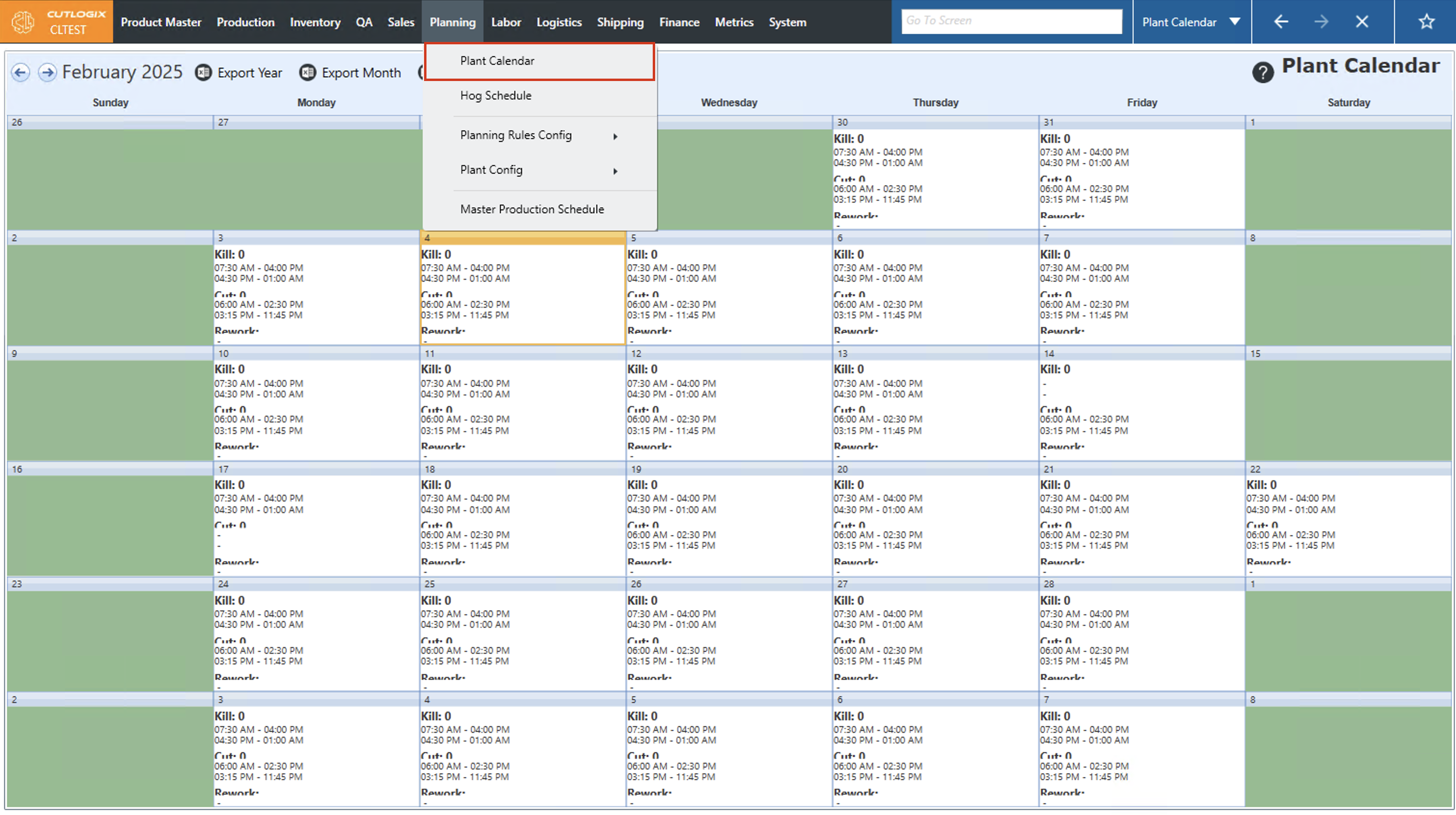 DemoStep 1: Navigate to the "Plant Calendar" page (Under the Planning menu → Plant Calendar)
