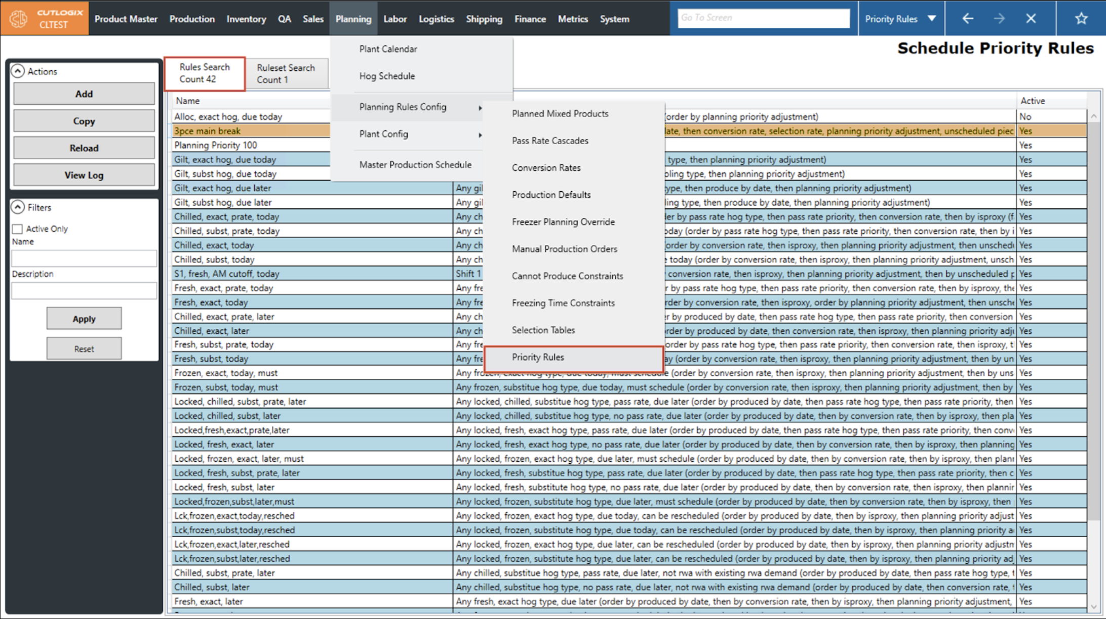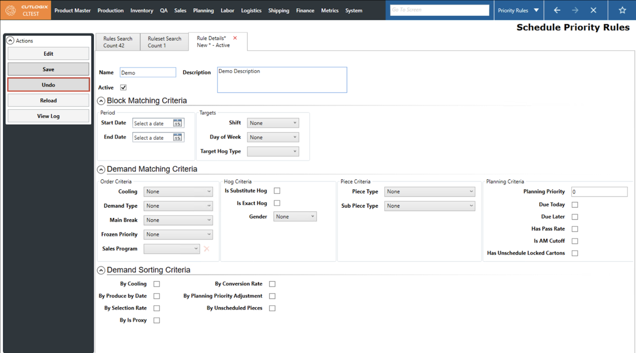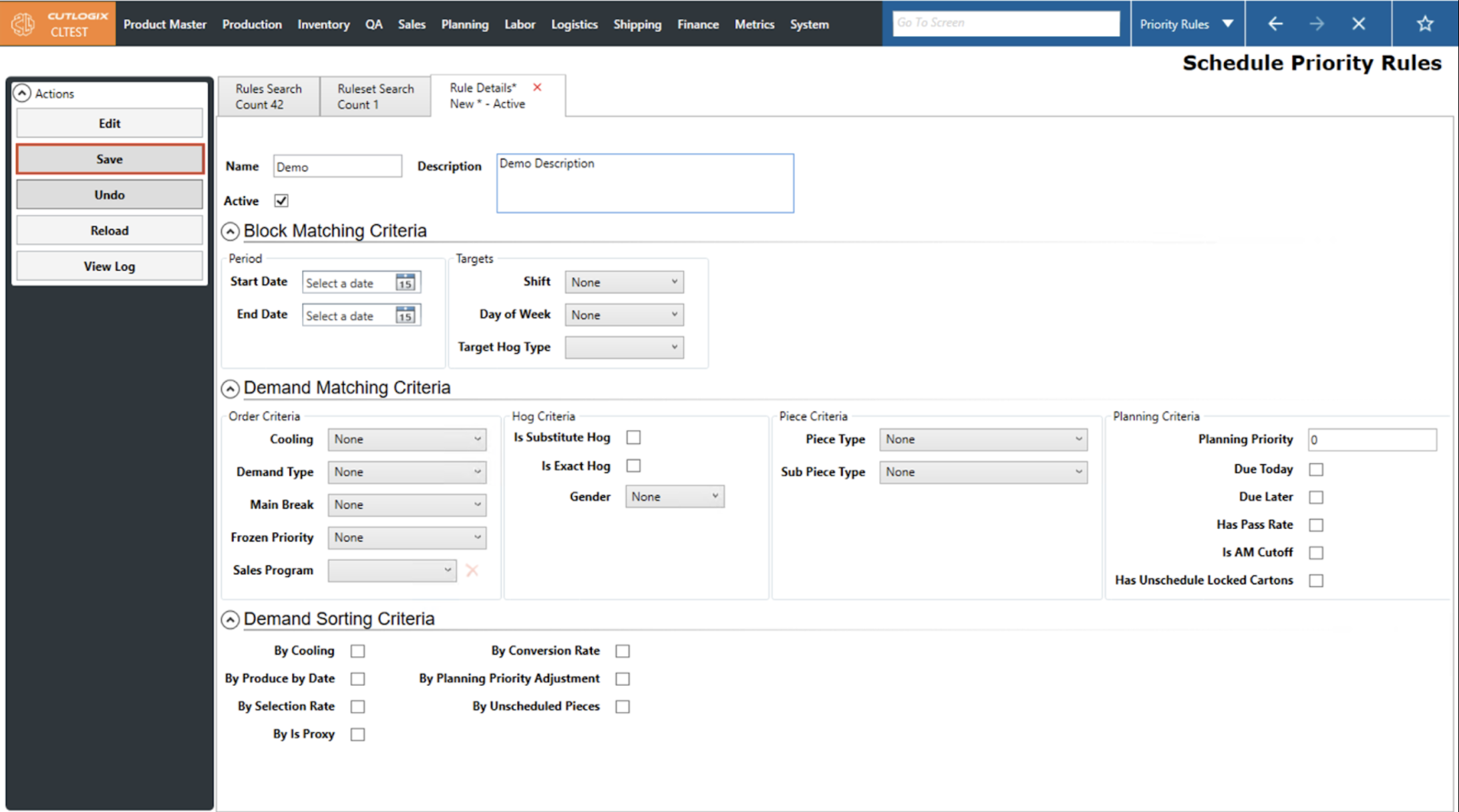 DemoStep 1: Navigate to Planning > Planning Rules Config > Priority Rules screen and select the Rules Search tab.