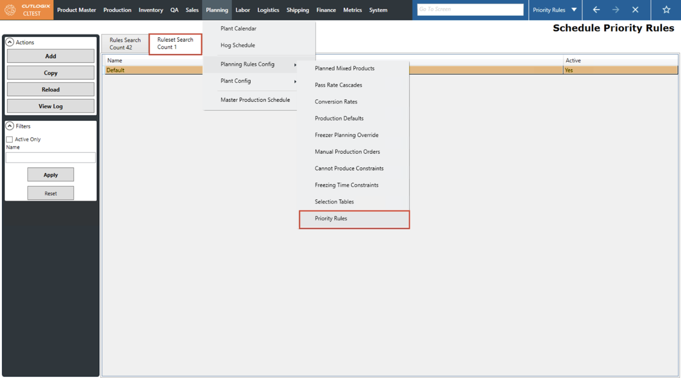 DemoStep 1: Navigate to Planning > Planning Rules Config > Priority Rules screen and select the Ruleset Search tab.