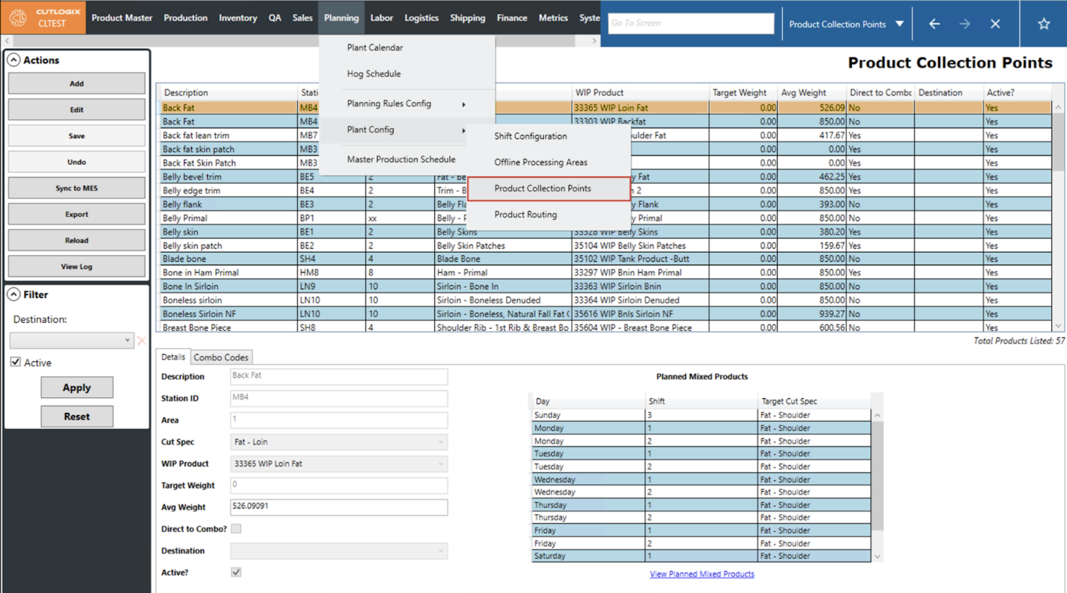 DemoStep 1: Navigate to the Planning > Plant Config > Product Collection Points screen.