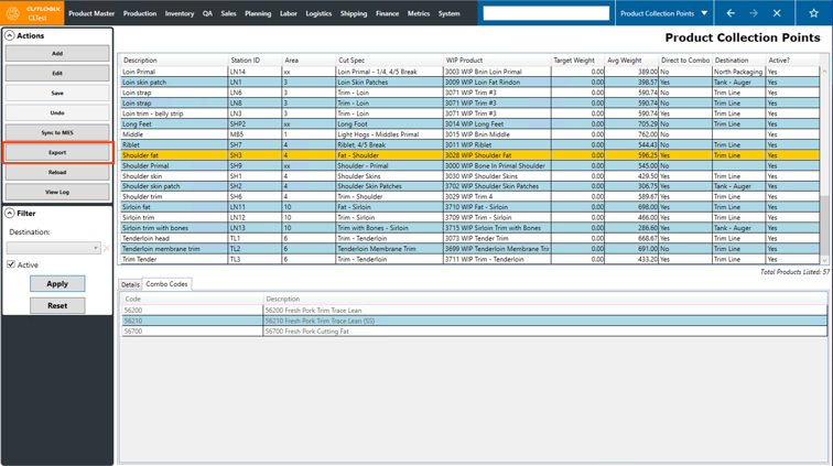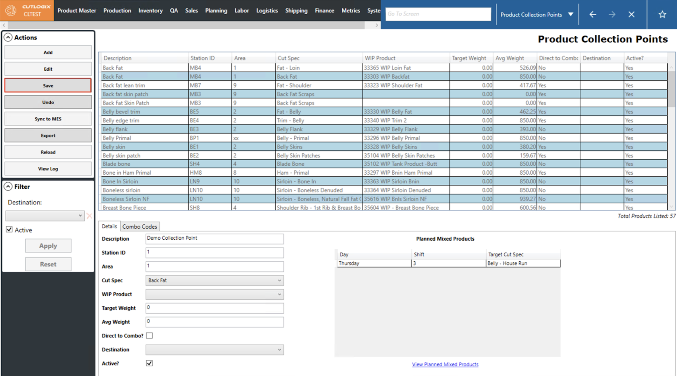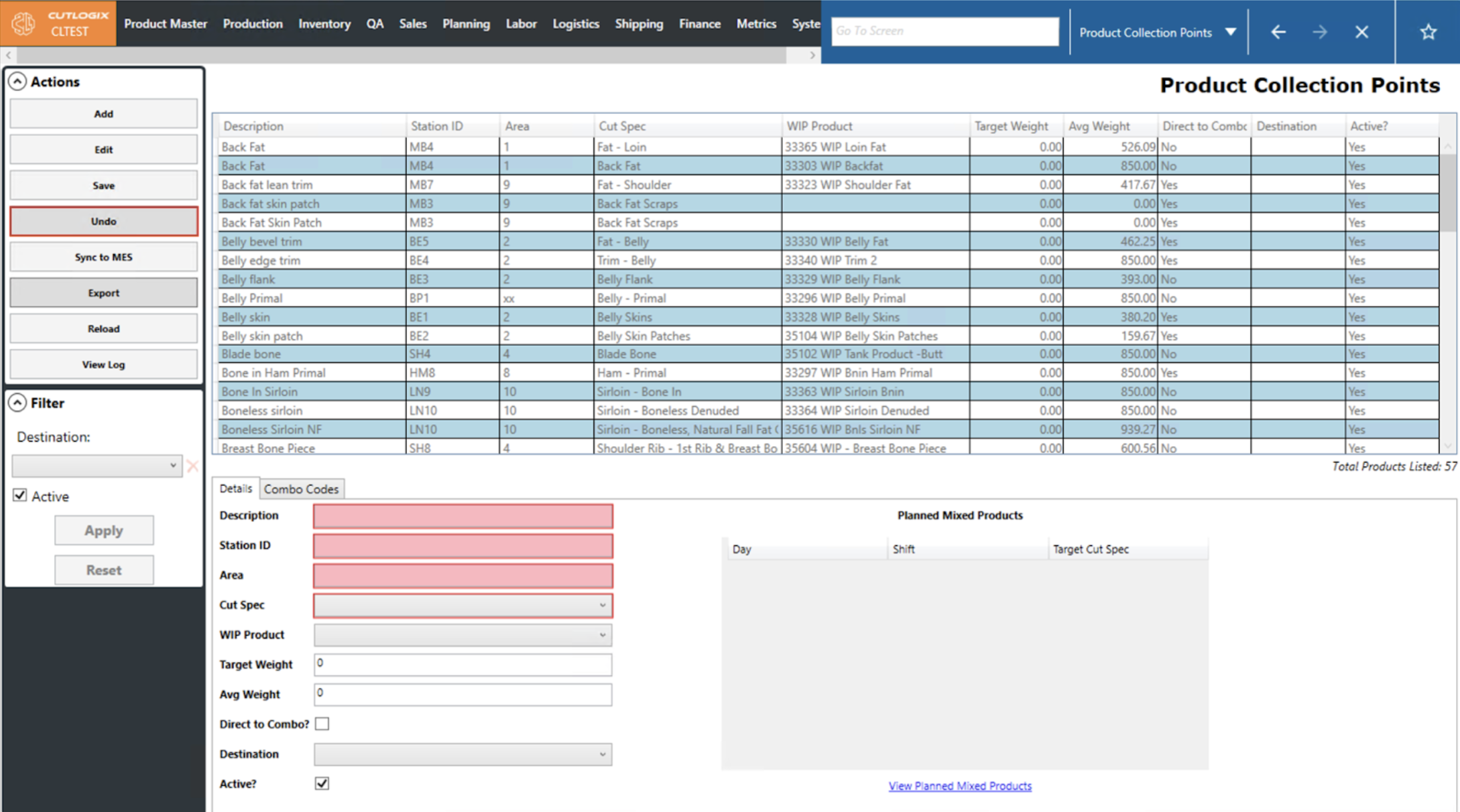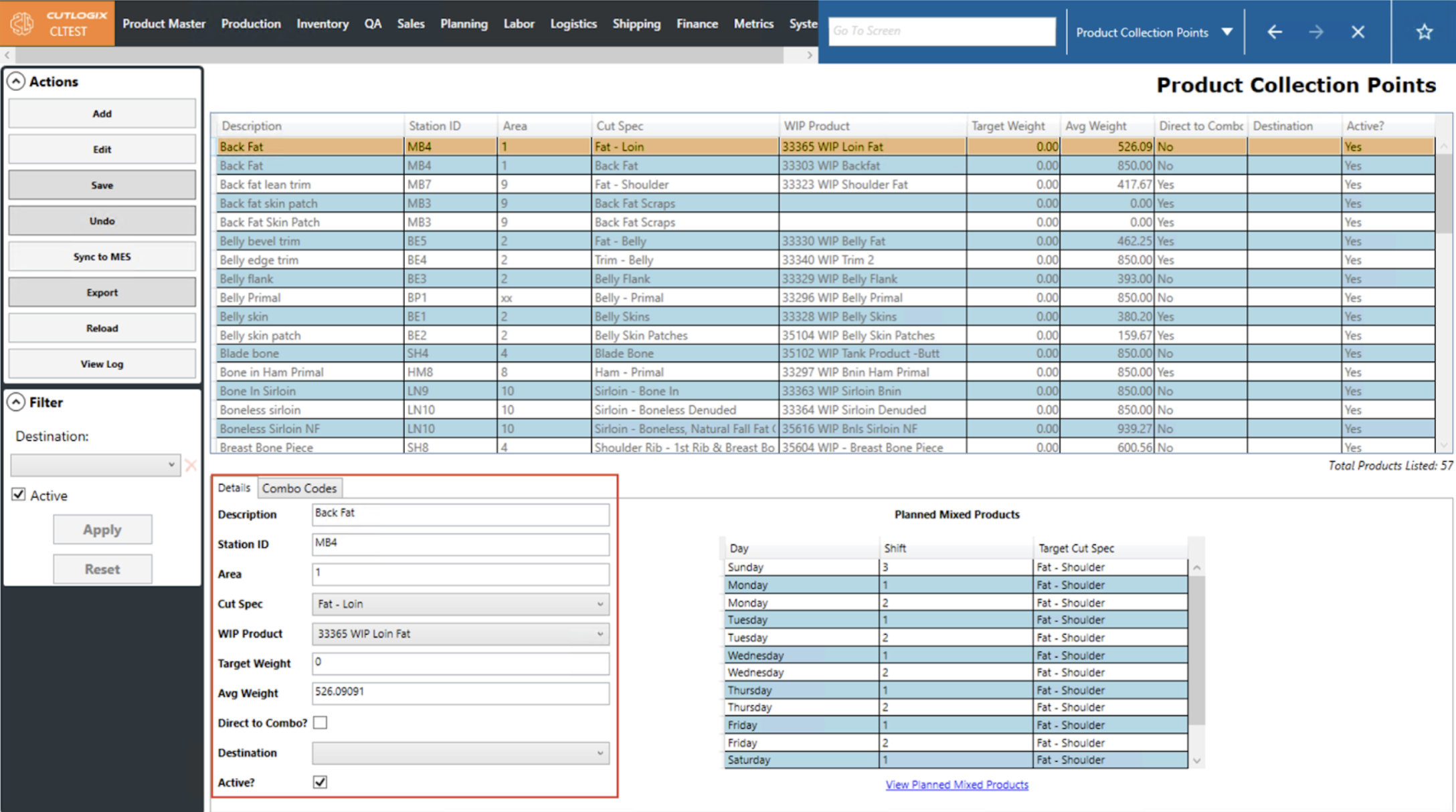 NOTE: When users select a cut spec, its associated Planned Mixed Products will be auto-populated on the right and any associated combo products will be automatically filled out on the Combo Codes tab.