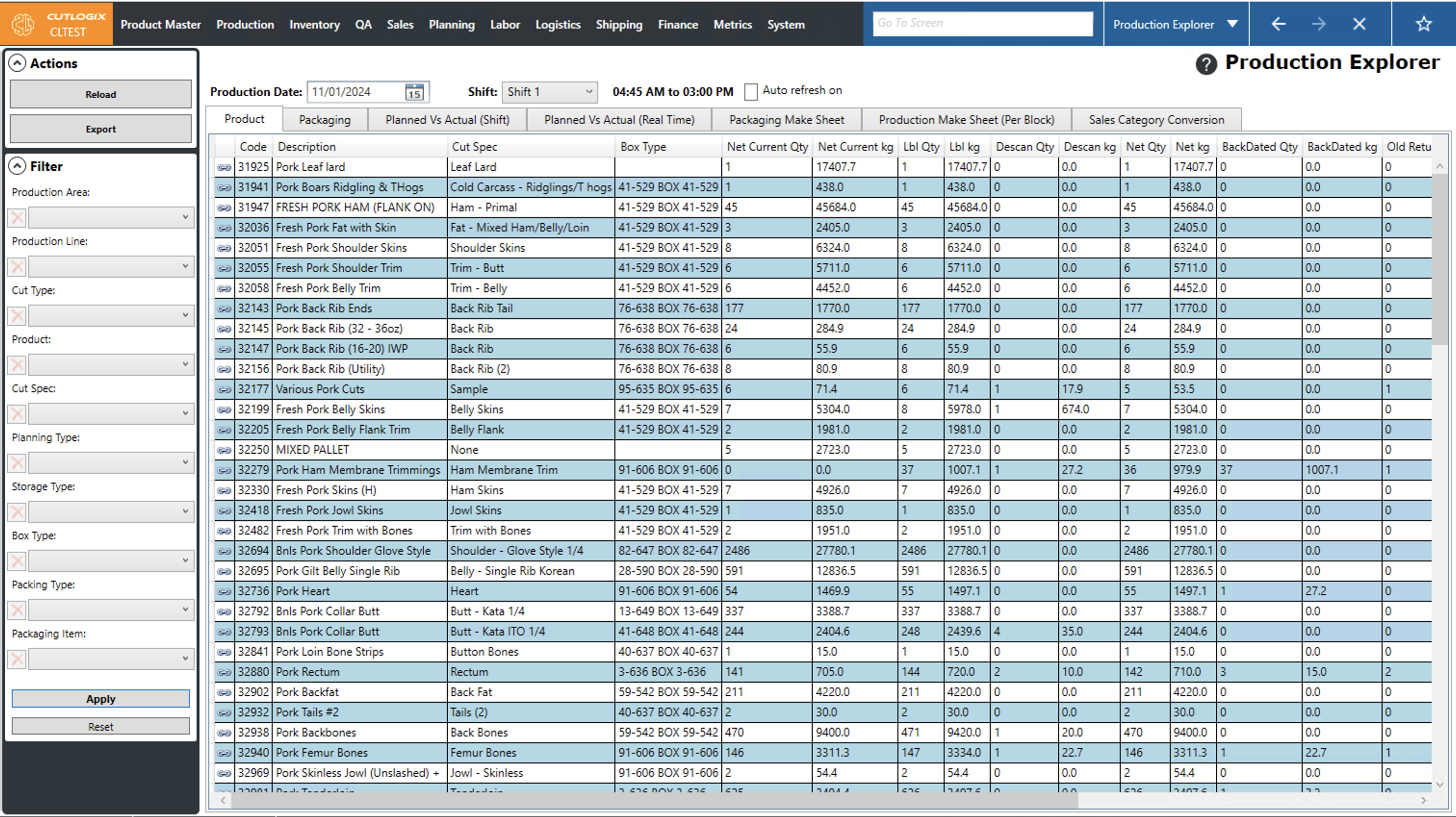 • Planned Kg: The weight, in kilograms (kg) of product that is planned to be produced on this shift.