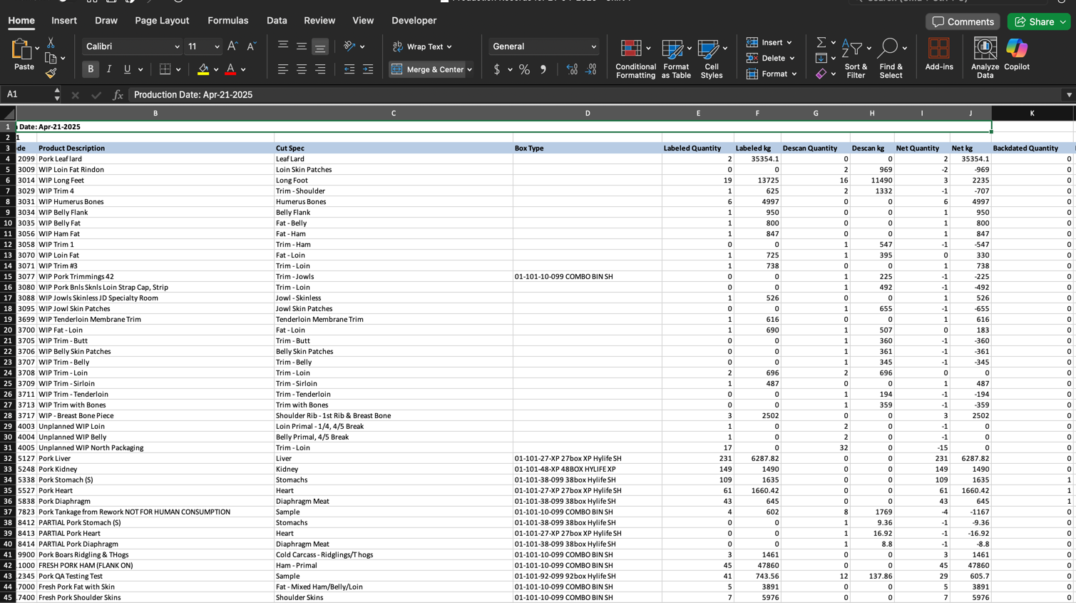 • Net Current Kg: The weight, in kilograms, of product produced minus the weight of its packaging.