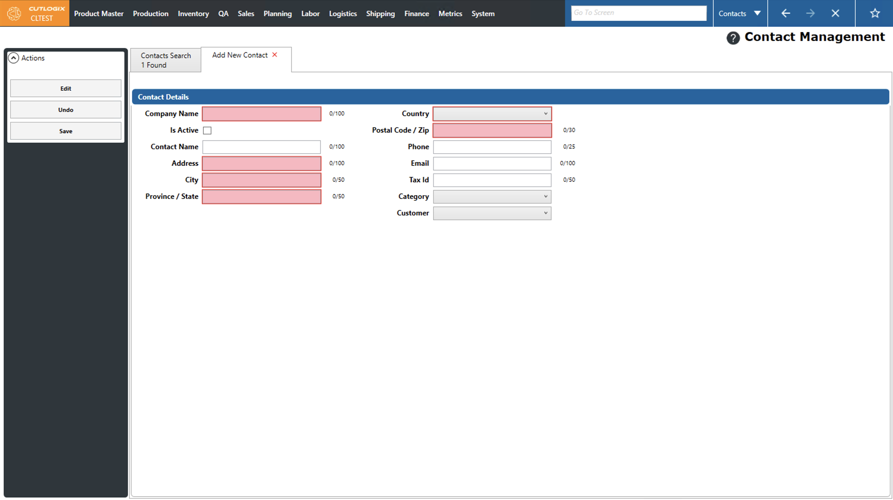 Step 3: A page to add a new contact will appear, fields that are required are highlighted in red and must be entered in order to save the customer. The required fields are as follows: