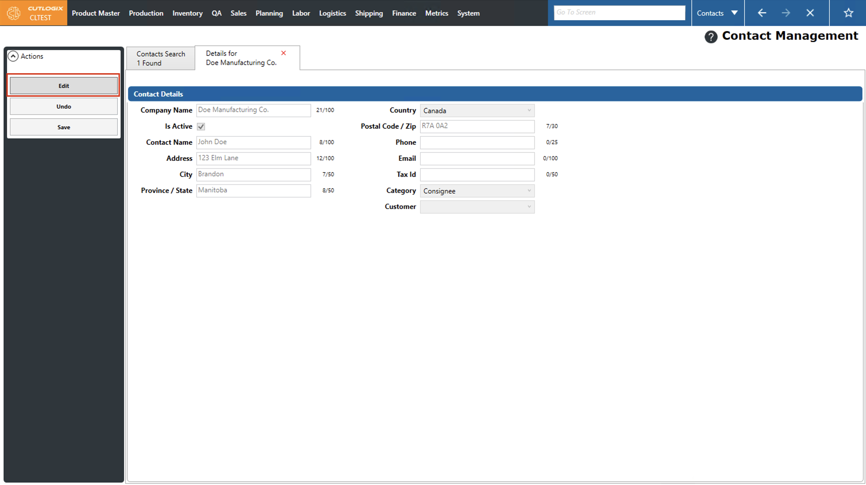 Step 3: Click "Edit" in the left actions panel to enable editing the contact.