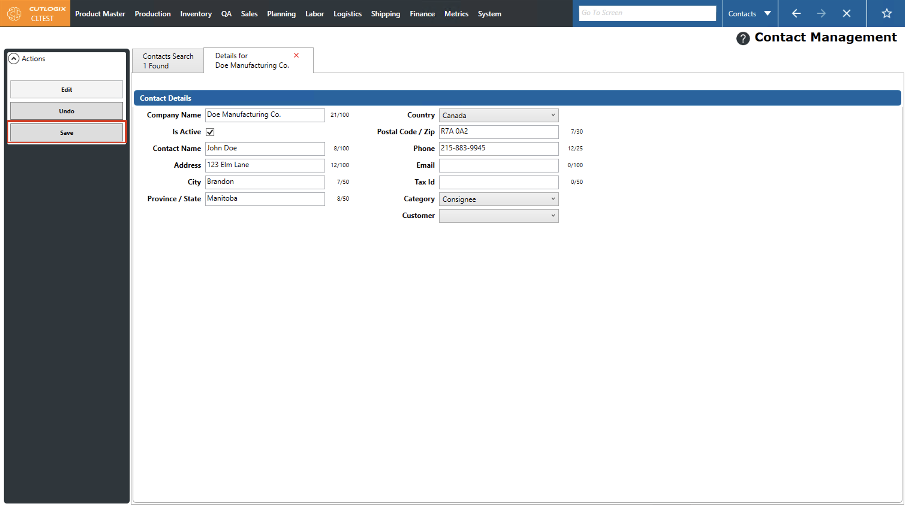 Step 4: Now you can make any necessary changes to the contact using the contact fields under the "Contact Details" title. Once you're done making changes, click "Save" in the left actions panel to save the changes. Note: If you've made changes that you don't want to save, you can click "Undo" in the left actions panel, and will revert any changes that you have made to the contact.
