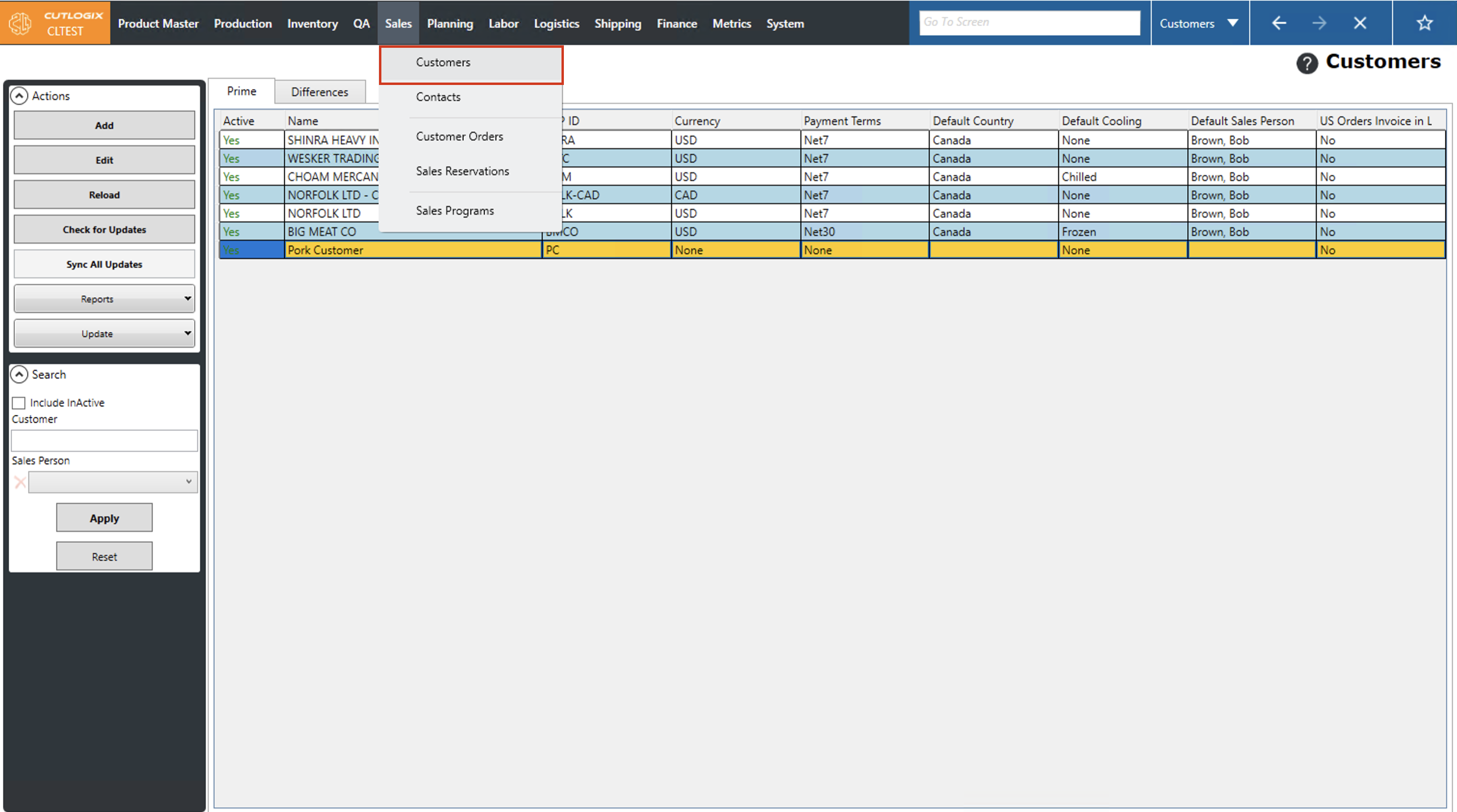 DemoStep 1: Navigate to the "Customers" page. (Located under the "Sales" menu option)
