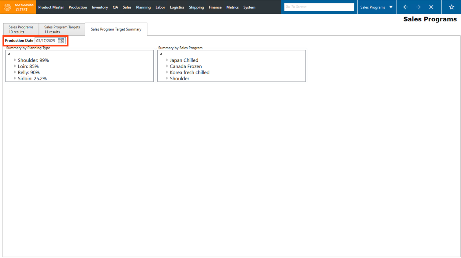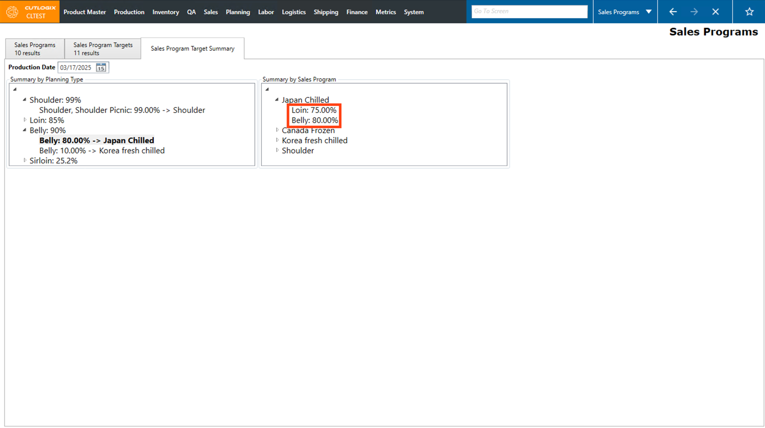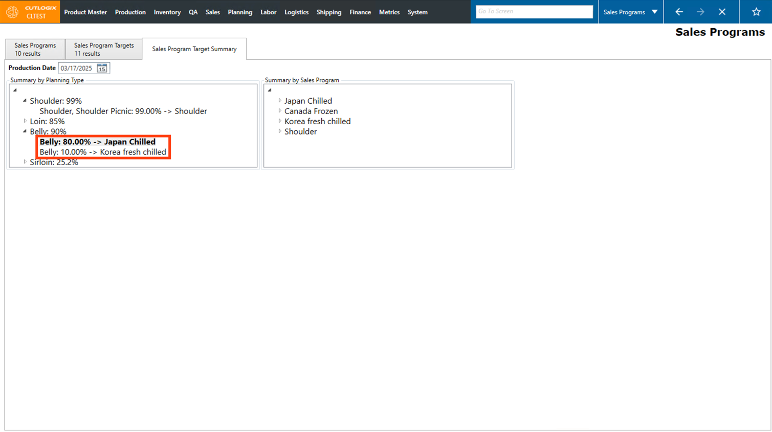 • Planning Types: The planning types, as defined in the planning module, that are included in this sales program. Planning type typically refers to a type of primal (ham, belly, shoulder, etc).