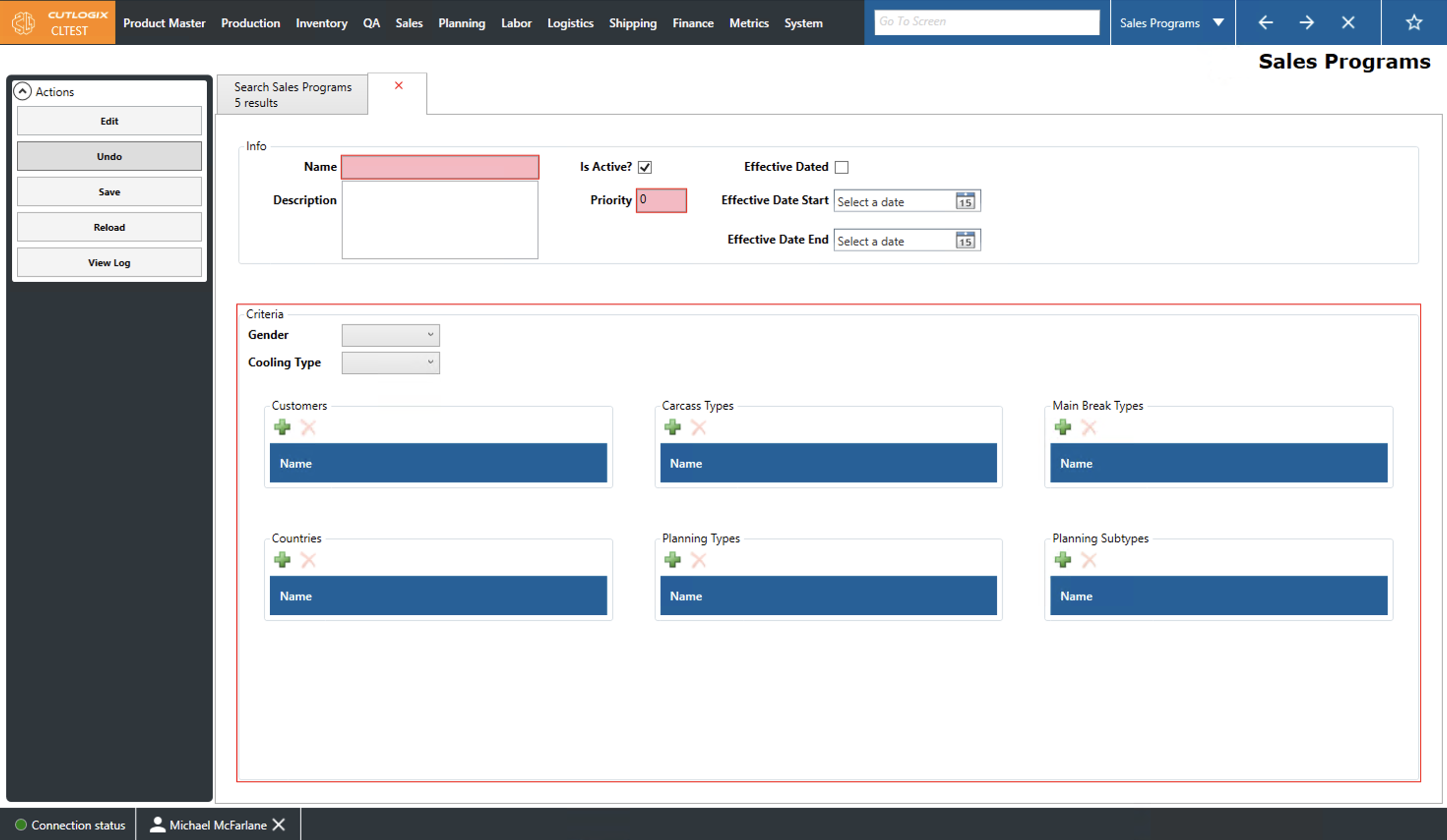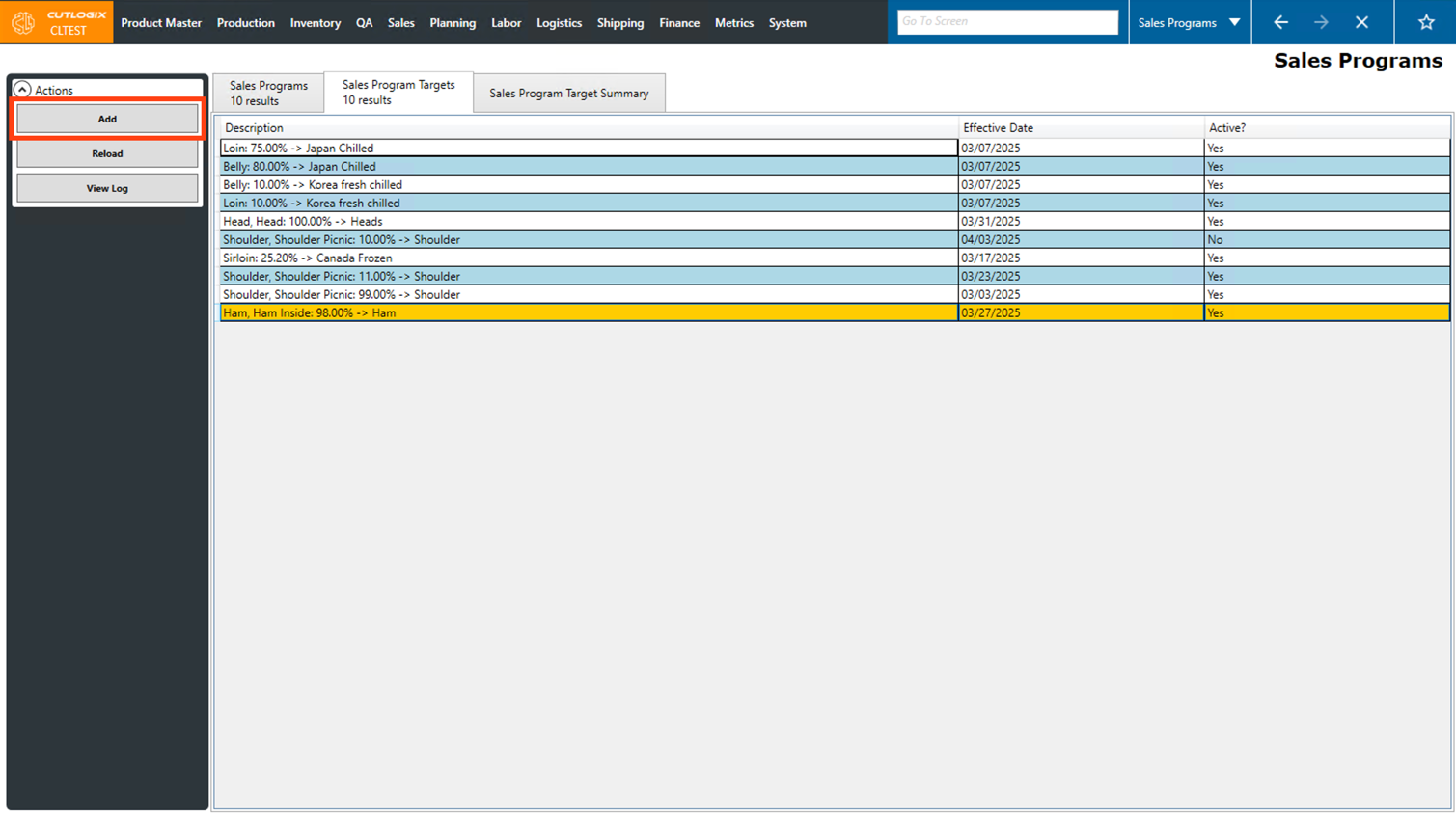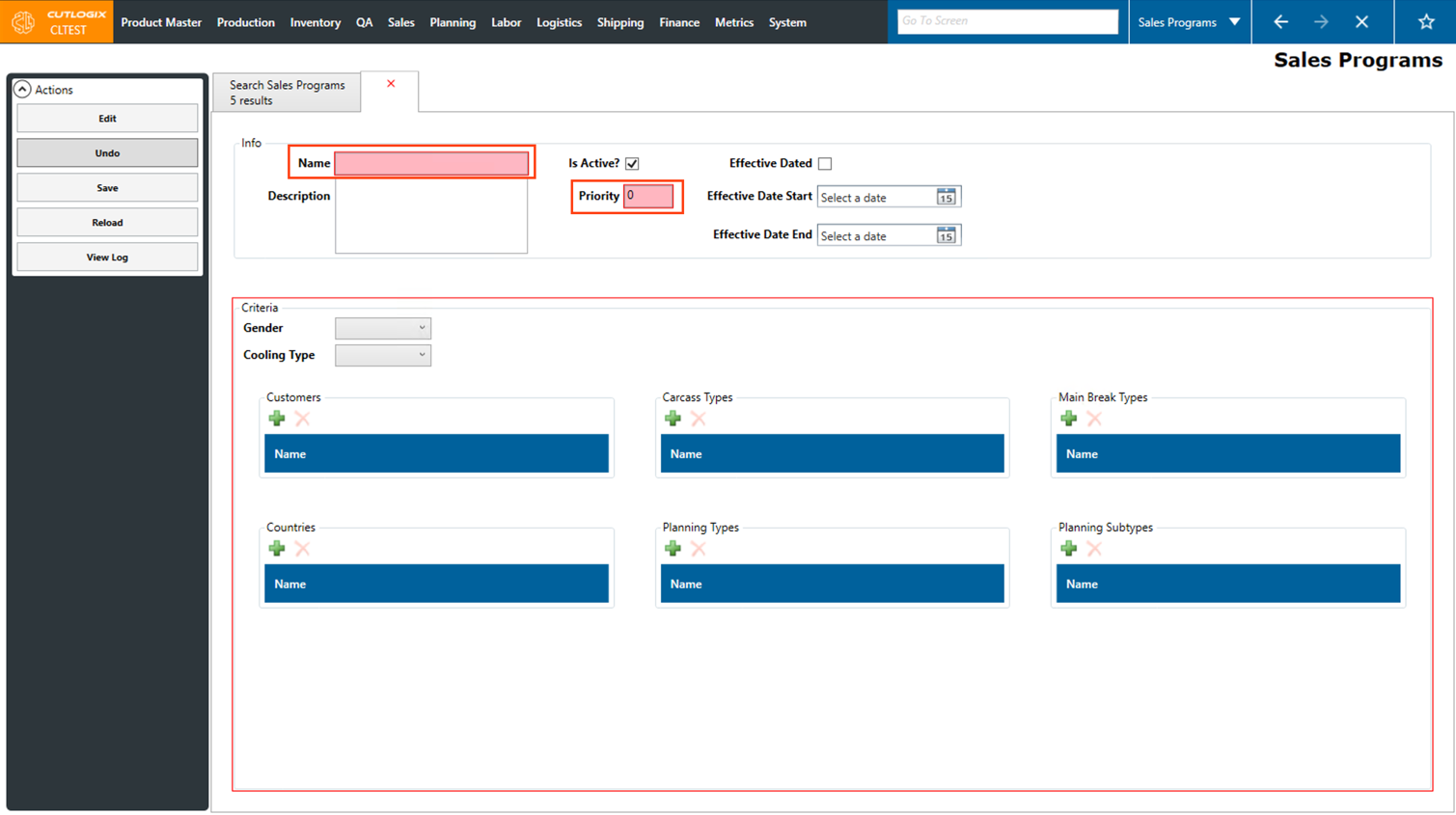 • Planning Types: The planning types, as defined in the planning module, that are included in this sales program. Planning type typically refers to a type of primal (ham, belly, shoulder, etc).