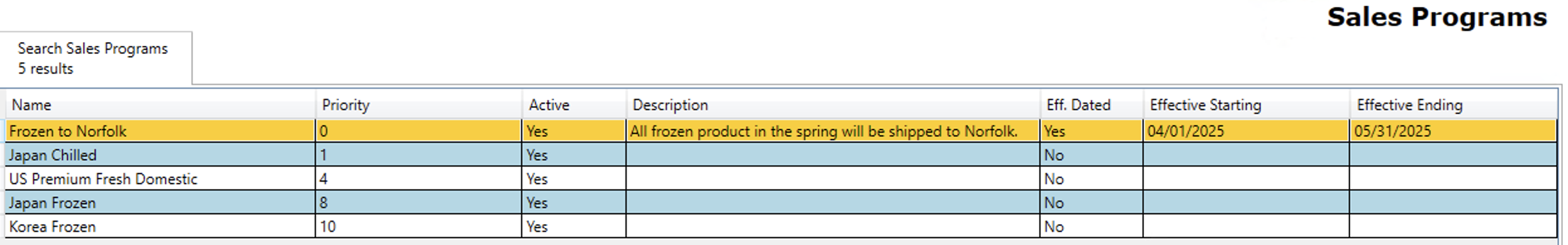Step 2: Double-click on the entry you want to edit. This will bring up the details tab for that sales program.