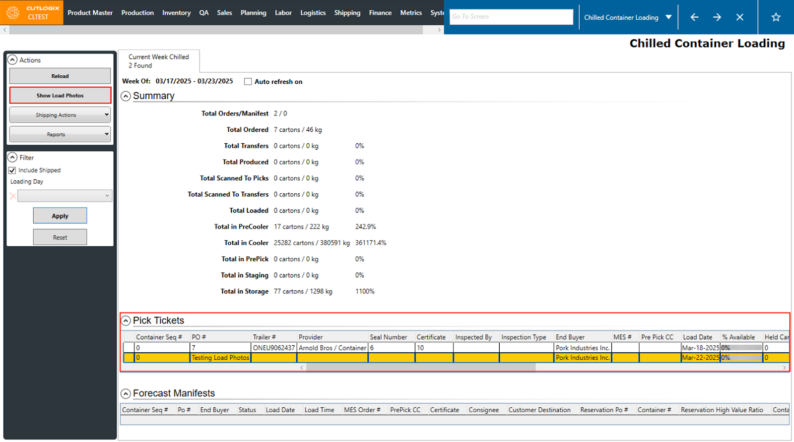 Step 2: Select the order in the Pick Ticket’s section that you wish to view load photos for and click the Show Load Photos button in the Actions sidepod on the left.