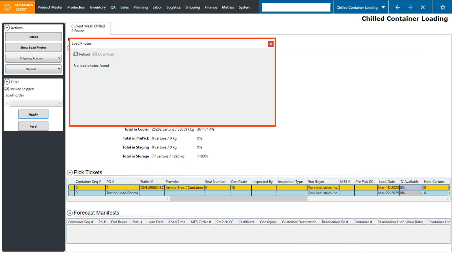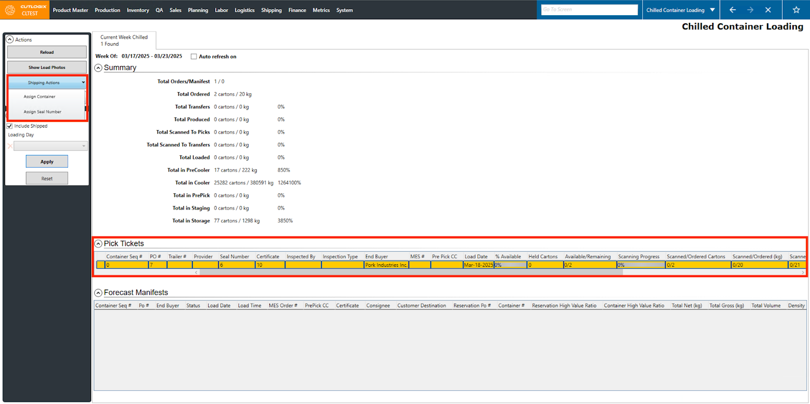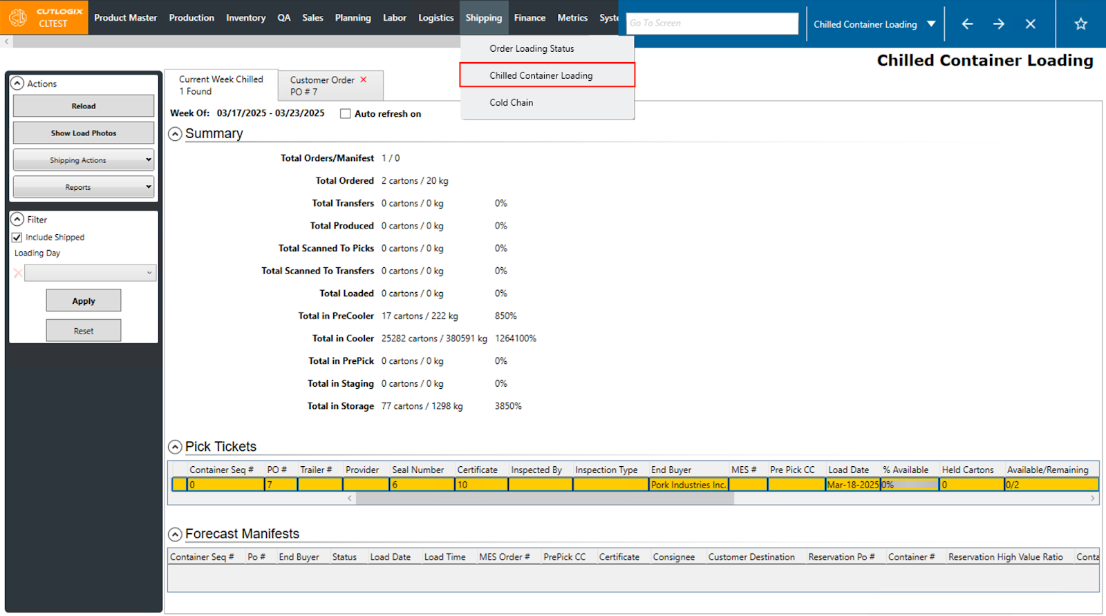 DemoStep 1: Navigate to the "Chilled Container Loading" page. (Located under the "Shipping" menu option)