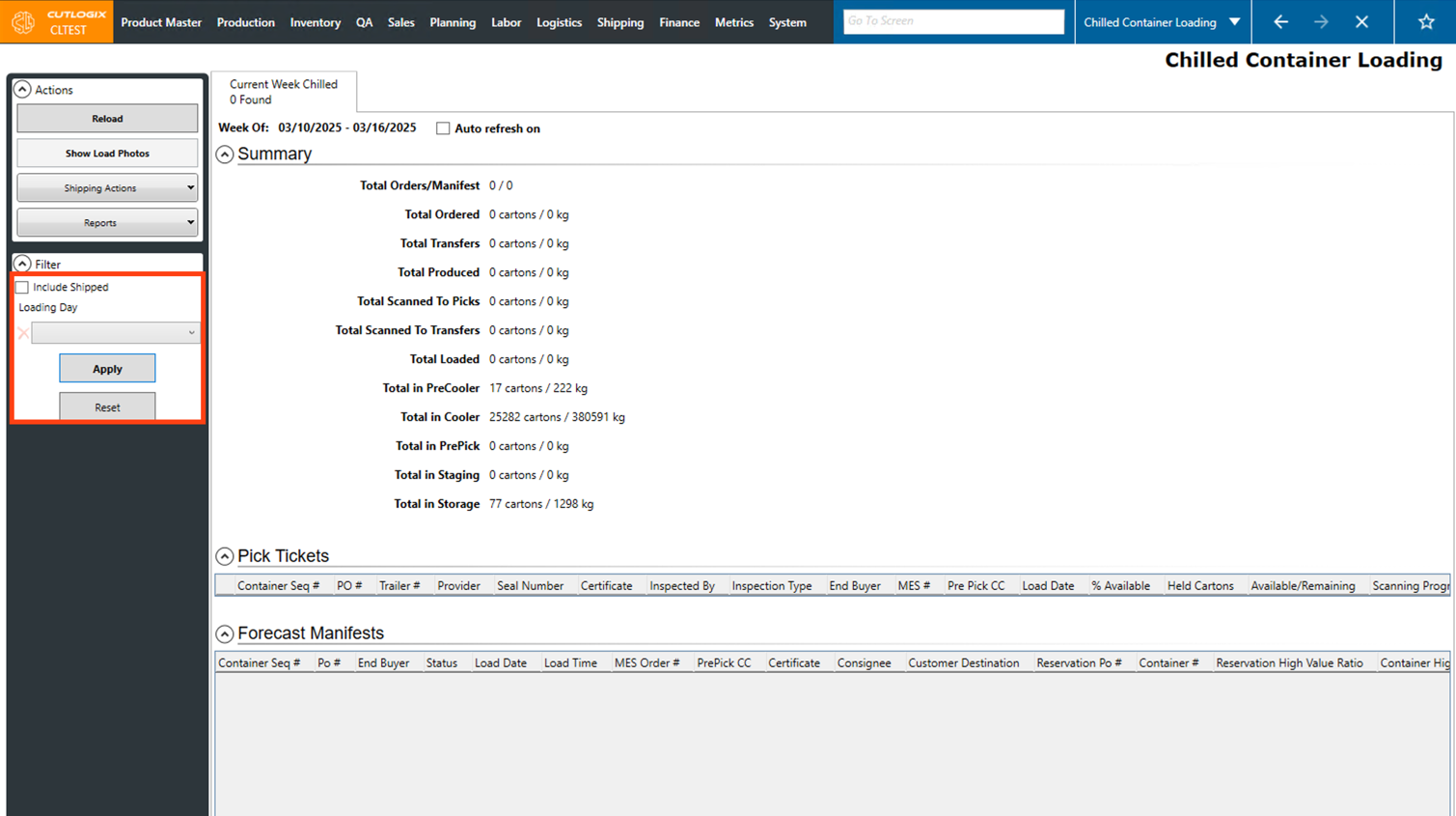 How to Navigate: Click on Shipping > Chilled Container Loading